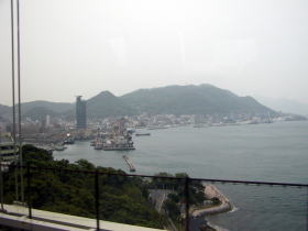 バスは都市高速を走り終わりそのまま直接福岡ICから九州自動車道に入ります。九州道を難なく走ります。対向車線を走る西鉄をはじめとする九州の高速バスに見送られます。バスは遠賀川を越え10時ごろ八幡IC付近で西鉄の東京から福岡に戻ってきた高速バス「はかた号」とすれ違います。「山陽道昼特急」は、「はかた号」とエールを交わしているようにも見えます。バスは小倉南ICで残りの乗客を乗せ定刻どおり10時09分に小倉南ICを出発しました。バスは九州道を走り続けます。新門司港を眺めつつ短いトンネルが何個か出てきたところでもうすぐ本州です。そしていよいよ関門橋です。関門橋はとてもでかくそこからの眺めも最高です。また門司港や下関港も眺められます。10時25分頃、関門橋を渡りきると山口県に突入です。