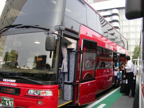 | 「山陽道昼特急博多号」が入線してきました。 | 乗車改札をしてバスに乗り込みます。 |