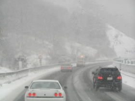 そして高速道路の流れがなんだか遅くなってきました。そして渋滞にはまりました。どうやら降雪が原因で渋滞になったのでしょう。進むスピードもだんだんと遅くなり、あげくの果てにはほとんど動かなくなりました。もしかしたらどこかで通行止めにでもなったのかもしれません。私はだいぶ時間がかかるのではと思い軽く昼寝をしました。
