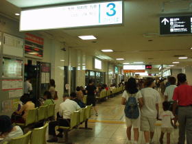 | 乗車フロアをかねた待合いロビーです | バスセンターのネットワーク図です 路線は南は鹿児島、東は東京まであります。 |
