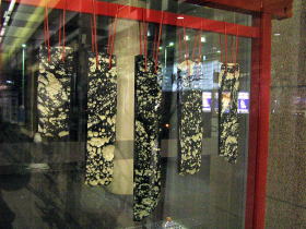 この「サヌカイト」という楽器は石で出来た打楽器で、坂出周辺で「サヌカイト」の原料の石が産出されていいるようです。「サヌカイト」展示の横で「サヌカイト」のデモ演奏(録音されたもの)が聞けました。音はグロッケンシュピール(鉄琴)に近い音色でとても安らぎを与えるような心地よい音色でした。(「サヌカイト」のHPこちらまたはこちら)