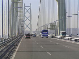 | 明石海峡大橋を渡ります。 |