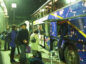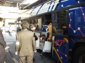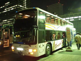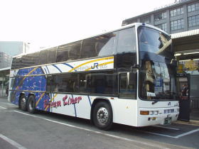 ここはJR大阪駅桜橋口のJR高速バスのバスターミナルです。今日は12月1日つまり大阪と東京を結ぶ昼用高速バス「東海道昼特急大阪号」の開業の日です。他の高速バスが次々と発着し午前9時ごろようやく、東京という方向幕をつけたダブルデッカー車が乗り場に入線してきました。「ただいま到着しましたバスは9時10分発の東京行き『東海道昼特急大阪号』です。このバスは今日開業の路線です。」とのアナウンスです。始発便ということもあり、野次馬やカメラを持ったバスファンが車両を撮影しています。いよいよ乗車改札が開始されます。今日開業ということもあり乗車改札を済ませた乗客は、記念品をもらい乗車していきます。バスのシートは夜行用独立3列シートでゆったりとして快適です。