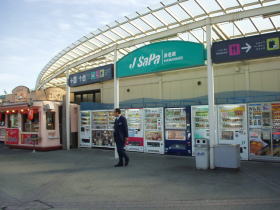 乗車改札も終わり、9時10分となりいよいよ日本の中心地である東京へ向けて出発です。バスはしばらくすると大阪駅北ランプから国道423号線に入っていきます。新大阪駅を越え千里ニュータウンでも乗客を乗せます。吹田ICから名神高速道路に入線します。バスは名神道に入ってからはひたすら東京を目指します。バスは出発してから1時間弱ほどで天王山トンネルを通ります。このトンネルをくぐると京都府に突入です。京都市内に入り京都深草バス停で残りの乗客を乗せ再びバスは東京を目指します。しばらくたつとバスは京都に別れを告げ滋賀県に突入です。バスは西側に琵琶湖を望みながら北東へとひた走ります。11時ごろバスは約一時間走り続けた滋賀県を後にして岐阜県に突入です。岐阜県に突入しバスは関ヶ原をを越えます。そして「大変長らくのご乗車ありがとうございます。まもなく養老SAに到着です。ここで10分間の休憩をとります。」とのアナウンスです。バスは11時15分頃養老SAに到着しました。トイレに行く人・電話をかける人・お土産や昼飯を購入する人様々です。