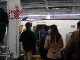 今日は2004年3月13日で今日より九州新幹線「つばめ」が部分開業します。西鹿児島駅も今日から鹿児島中央駅に名称変更されて新幹線出発の準備が着々と進んでいます。午前4時半ごろ鹿児島中央駅には数多くの人が集まっています。また始発便の自由席を求めて並んでいる人もいます。もう5時前に開通セレモニーが始まりました。まず改札口でくすだまが割られて改札口の通用が始まりました。今日は人がかなり多いので開業式参加者から先にコンコースへ入っていきました。そのあと自由席乗車の乗客が通されました。私は既に指定席で予約しあるのでまだです。ある程度自由席の乗客が通された後、指定席で乗車する乗客が通されました。私も改札を通りコンコースに入りました。コンコースには新幹線の出発案内が掲げてありました。コンコースに入った自由席の乗客は係員の指示で並んでいました。