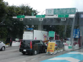 | 上里SAで休憩中の「上州ゆめぐり号」 | 渋川伊香保ICから高速道を降ります。 |