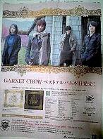 先週10日、ガーネットのベスト盤リリー スの当日、朝日新聞の朝刊にガーネットの全面広告が掲載されました。それを知ったのが、当日の夕方だったため、残念ながら新聞を買う事は出来なかったのですが、私がガーネットファンと知る会社の部下が、数日後、新聞を見たと話しかけてきたもので、まだ自宅に残っていた新聞を貰いました。という事で、それを撮ってみたものを載せたいと思います。事前に予告していたようには記憶していませんが、予告していれば、何万部か売上が増えていたのかもと思います(笑)。ちなみに、写真ですが、折りたたんでいたものを、広げた撮ったもので、折り皺が残っていたりして、スイマセン。<本日の更新> 特にございません。 |