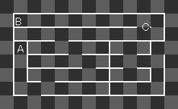 スタート直後中央の通路でアイテム「C」を拾ったら真っ直ぐ上へ移動して全てのアイテムを回収しましょう。
