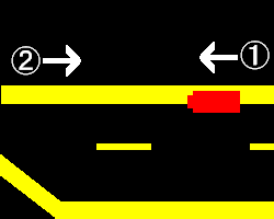 最初の分岐は下へ。ゆっくり進んで行くと右から鉄骨を積んだ戦車が来ます。(図の@)手前にある巨大な乾電池みたいな物を