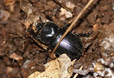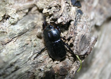| 4月〜10月まで活動、くち木の中や腐葉土の中にいて、昆虫の死体などを食べる。胸部背面にくぼみがあるのが特徴で小さい角がある。本州にすむカブトムシは、このコカブトムシとカブトムシの2種類だけ。地域によっては数を減らしているそうだ。 |