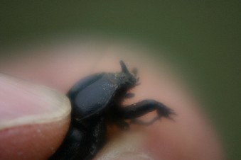 カブトムシの仲間といってもツノは短くて貧弱。メスはオスに比べてツノがずっと短く、本によってはメスにはツノがないと記載されているものもある。