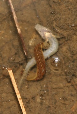 しかしこのドジョウ、なんだか雰囲気が変。よーく見ると、僕から逃げているのではなく、別の生き物と格闘中であった。その正体とは・・・・・・・・。