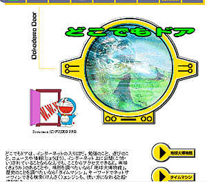 その辺りは、今後も、関係者の皆さんの努力に期待させていただくことにしまして、話を続けさせていただきますと、「ドラネット・マガジン・クラブ」の中にある“どこでもドア”というのは、インターネットのリンクという機能を非常に上手く捉えたメニューでありまして、要するに、リンク集と検索エンジンを兼ね備えたページになっています。左の画像にある“どこでもドア”のトップページでは、次のように説明されています。