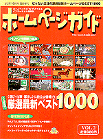 この『ホームページガイド』は、「ショッピング」、「ファッション」、「フード」、「暮らし」、「美容・健康」、「子ども」、「メディア」、「音楽・映画」、「旅行」、「レジャー」、「動物」、「アミューズメント」、「コンピュータ」、「社会」、「カルチャー」、「地域情報」という16のジャンルについて、編集部で選んだホームページが紹介されており、表紙(右の画像)の上には「ぜったい注目の厳選最新ホームページBEST1000」、題字の上には「ホームページの“旬”がのってるインターネット情報誌」のコピーが、それぞれ踊っております。