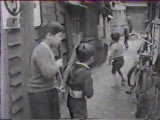 放送時間になると 銭湯から子供たちの姿が消えるとも言われ、 子供たちの遊びも 月光仮面ごっこが大流行り。 《主宰者から》 いやー、こんな映像、日本テレビは何処から探し出してきたのでしょうか。 長屋の路地裏のような風景といい、子供たちの背景に映っているスクーターやらゴミ箱やらリヤカーやら、もう、何から何まで、懐かしい限りであります。 静止画像だと、よく分からないかもしれませんが、子供たちがバンバン撃ちまくっているピストルは、巻き玉ピストルであります。