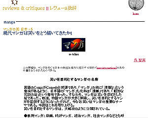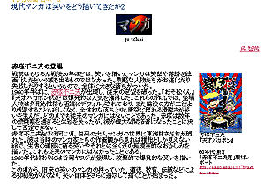 「60年代通信」の「60年代ギャグマンガの帝王・赤塚不二夫、上野の森美術館に登場」にリンクを張っていただいたのは、その中にある「マンガの国・日本」という連載は、評論家の呉智英さんが「マンガをめぐる日本の状況を海外に紹介する目的でnmp