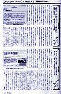 この特集は、153ページから169ページまで17ページが費やされており、扉の153ページをのぞくと正味16ページの構成で、見開き2ページに4個ずつソフトやホームページが紹介されています。