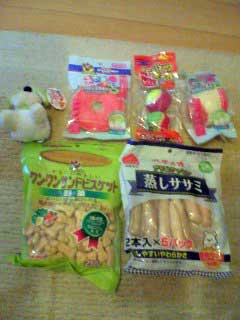 ハッピーと同じミニチュアシュナウザーの ライチくん、ポテトくんのママさんからです! ぬいぐるみに歯みがきおもちゃに、 クッキーにささみに…。 ライチママさん有難うございました!hiro わーい!こんなにたくさんもらったよ〜。 おもちゃは楽しいし、おやつは美味しいし…。 嬉しいんだワン。有難うなんだワン。 |
