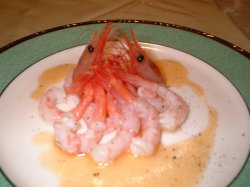 11.盛りつけた海老に{10}のドレッシングを添えます。