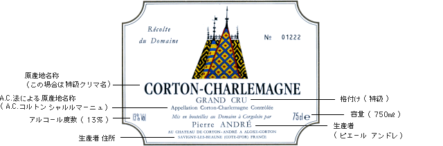 フランスでは、1935年にワイン法(A.C.法=原産地統制名称法)が制定されて以来、生産地域・ブドウ品種・栽培方法・1haあたりの収穫量・最低アルコール度数等の厳しい規定により、ワインの分類がなされています。