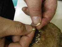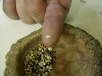 ★手順2 粒の大きい、ヒマタネやサフラワーなどは皮を剥いて、さらに割ってしまいます。サフラワーを剥くのが難しければ、3等分ぐらいに切り分けても良い。 |