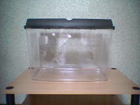 ピグミージェルボアの飼育容器には、水槽やプラケースを使います。1匹やペア飼いをされるにはプラケースで十分ですが、複数飼いやナイトスポット・照明器具などを使用したい場合等を考えると、60cmの水槽が無難ではないでしょうか。自分なりのテラリウムを作って楽しむ場合も60cm以上の水槽をオススメします。また、水槽を使用する場合も緊急用の予備として同じ様なセッティングを施したプラケースをご用意することをおすすめします。 | ![]() |