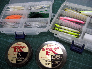 <詳細> 最初に書いておこう。。 久しぶりに”名刺サイズオンリー”だった。。。 したがってレポートもてきとーです。 道具の写真たくさん載せてごまかしました(泣) でわどうぞ。 先週、シマが調子よかったので、便乗してオレも行く。 今回は新しく出来上がったNewロッドのデビュー戦。なんとしても ソッコーで仕事を終わらせ、ボンゴを酷使して、東名阪を飛ばす。 途中かなりの横殴りウインドゥに、”レーシーな足廻りセッティング”のボンゴは かなりのジャジャウマぶりを見せる。 少し風の影響を心配しながら最初のポイントへ到着。 ここは前回ミズノがリサーチしてきたポイントで、小さいながらコンディションの 良いのが数出るというところだ。 最奥のスロープで始める。 とりあえず2本もってきてる中の柔らかい方で始めると、いきなりアタリ! さっそく”タマシイ注入”だ! すごく小さいが、まぁ一匹は一匹だ。 こんどはロッドを替えてキャスト&ソッコーヒット! 連続だ!!しかし、、、、型が、、、お豆です。。 おかしいぞ!ミズノの情報だと、小さくとも15cmはあるとのことだが、 コイツらはどうみても10cmねぇんだよ。 口にくわえてるワームを見てくれ!2.2インチのワームが巨大化してます! 投げればこのサイズがスグに喰らい付いてくるんだけど、さすがになぁ。。。 で、このポイントは見切りをつけて一気にエースポイントへ向かう。 はぁ、また”頼りきり”だよ〜。。。 と、すでに釣れた気でいたが、なんとエースは沈黙していた。。 やはり、ここんところの度重なる登板で疲れが蓄積していたのか、まったく イイトコ無しで、豆サイズを数匹釣っただけでした。。。 敗因はやっぱ、”大潮”かな。全体的にニゴリ気味で、あっと言う間に 水位が変わってしまった。。 こんどからは外さねば。。勉強になりやした。 まぁ無事にロッドデビューできたので良しとします。。。 <タックル> PE用 ■ロッド:オリジナル73 ■リール:イグジスト2506 ■ライン:ヨツアミG-soul PE0.4号+シーガーグランドマックスFX1.0号 ■ルアー:月下美人ビームスティック2.2インチなど ■ヘッド:COBRA29 1.0g 1.4g モノフィラ用 ■ロッド:オリジナル68 ■リール:トーナメントエアリティ1500 ■ライン:バリバス トラウトアドバンスFC 2.5lb ■ルアー:月下美人ビームスティック1.8インチなど ■ヘッド:流弾丸 1.0g 1.3g さて、 あまりに貧果なので、最近使ってる道具を少し紹介。 ルアーは上の写真の通り、ごくごくシンプルです。 ワームも信頼のおける銘柄と色を固め打ちし、ジグヘッドにも始めから セット済のものを用意してあります。 プラグの類いは、やはりマンサー御用達のエースルアーのエースカラーが たくさん入ってます。つーか、頼りきりです。 あと、最近PEを使っている関係で、リーダーも必要になってきました。 色々と使ったけど、やっぱ”世界のシーガー”ですかね。 フロロカーボンとは思えないほどしなやかで、 摩擦に対するキンクも驚くほど少ない。 ノットワークをする際に、複雑にきつく指に絡めつけるので、他のリーダー ではどうしても多少キンクしてしまっていたが、こいつはほとんどない。 とうぜん強度は言うまでもありません。 優秀です。 ヘッドライト。 おフランス製の”ペツル ティカプラス”です。 4LEDで、単4電池3本使用。 デザインと評判だけで、通販で購入。 ソコソコお値段がするため、ブツが来て実際点灯するまでドキドキでした。 で、激烈に明るいです。 今まで使ってた某大手国産メーカーのヤツなんて、”豆電球”レベルに 思えるほどだ。 スイッチが節度感のあるプッシュ式なのも非常に使い易いです。 ただ、ランタイムが少し短いかもしれない。 付属の正体不明のドイツ製電池は、3回の釣行でジエンドした。 現在国産の高級アルカリ電池にて使用中だが、はたして。。。。 リバレイのエギクーラー。 これはもともとエギング用の簡易クーラーバッグなのだが、 普通に釣具を入れて使っている。 保冷用のウレタンがバックの型くずれを防いでくれて、物の整頓と、 出し入れがすごくしやすい。 容量もこのクラスとしては必要十分で、ほとんどの釣りがコレで行けてしまう。 というか、ほとんどの釣りに同行させてる(笑) コイツに関しては文句のつけどころは無いね。 しかし残念ながら、現在製品ラインナップから外れてしまっていて、 もう手に入れることが出来ない。 こんなことならもう一つ買っておくんだった。。。 とまぁこんな感じです。 またヒマ見てお気に入りのタックルをアップします。 まぁこんなことせんでもイイくらい釣れれば一番いいんだけどね。