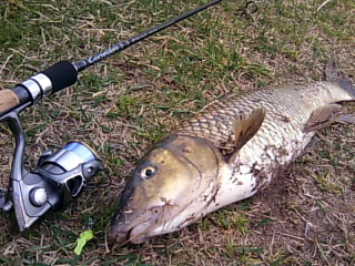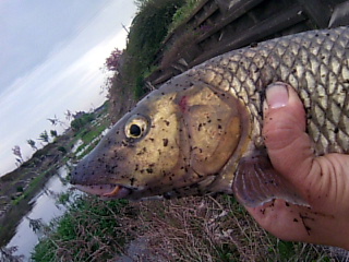 <詳細> 人それぞれの、さまざまな思い出の中に「あの頃の自分」が居ることだろう。 僕も今日は「あの頃の自分」に会いに岐阜方面へと車を走らせた。 岐阜と言えばもちろん金津園…ではなく二ゴイ。いわゆるSPOゴイだ。 そして「あの頃」とは、マンサー内での二ゴイ王争いが熾烈を極め 「マンサーの敵はマンサー」なる言葉が生まれた頃の事だ。 あの頃のようにSPOゴイは僕を熱くさせてくれるだろうか? さて、ヤツ等を楽しむには1にも2にも場所次第。いきなりエースポイントの「K川」へと向かった。 川沿いを歩きながら二ゴイを探す。が、居ない。本ゴイすら居ないのだ。 「やばい…Mちゃんの二の舞か?」早めに川を替えたほうが良さそうだ。 今度は「T川」へ行く。着いてすぐに本ゴイを発見。ヨシ、ここはいけそうだ。 そして少し歩くとついに本命発見!流れにルアーを乗せ、二ゴイの鼻先、約50cmの所へ… そして着底…「!」反応した!焦る気持ちをなだめつつ小刻みにシェイク… 「SPO!」吸った!「ビシッ!」フッキング成功!「ドババッ!」 バスとはまた違ったのたうつようなジャンプ!「ジィィ〜!」滑るドラグ! 全くグッドコンディションの二ゴイのファイトは暴力的だ。フィニッシュはネットでランディング。 約60cmの二ゴイだった。やはり二ゴイは小河川での魚の息遣いを感じながら、 あえて自分自身にもプレッシャーを掛けるような接近戦の釣りが最高だ。 僕が小河川にこだわるのはここに訳があるのだ。大河川では味わえない。 だいいち、大河川なんてどこで竿出せばいいか分らん。釣れたためしもない。嫌いだ。行きたくない。 そんな感じでこの日は本ゴイも混り4本キャッチした。 ふと、「あの頃の自分」が、 「SPOとは『SUPER PREMIUM OUTSIDER(外道)』だろ?」 と、ささやいた気がした。やはりいつの時代もヤツ等は熱いのだ。 <タックル> ■ロッド:テーパーアンドシェイプフレックスハント63UL ■リール:ツインパワー2500 ■ライン:ナイロン8lb ■ルアー:ジグヘッド2・5g〜3g ビームシュリンプ、センコー(デビルセッティング)