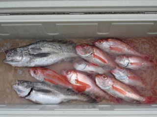 <詳細> 10日の天気予報は雨 ということで釣りに行くことにする。 いつものようにわし丸で中深海アカムツ狙いであります。 家から港に向かうが、東に行くほど雨が降っていない様子。 1日中雨に降られながらの釣りを覚悟していたが 少しばかり心に陽が差す。 まあ昼前には絶対降ってくるだろうが。 6時に出船し一路ポイントを目指す。 雨も時々パラパラとくるがレインのフードを被るほどではない。 海況も天気図から予想されるよりもかなり凪いでいる。 雨曇りの曇天、しかも凪。 イタダキだな。 そんな風に考えとったがそういえば前回も 状況とは裏腹にかなり渋かったような・・・ もっとも今回はタフコンディションを想定したスペシャル仕様だで何とかなるはず。 釣り始めてしばらくすると結構大きなアタリ。 本命ならばなかなかのサイズだが、上がってきたのはオオニベ。 1.5キロほどと800グラムほどのダブル。 どうりでよー引くと思った。 その後もポイント移動するたびにポツポツ拾うがどうもサイズが上がらない。 10時すぎくらいからとうとうマジ降りになってきた。 一時は水煙で海面が真っ白に見えるほどの激しい雨。 しかしなぜかそういう時はあたるんだな。 本日自己最大サイズGET。 っても600グラムほどですが。 結局最後まで集中力が切れん程度に時々はアタリがあり 大変楽しめた釣行でした。 ![]()