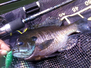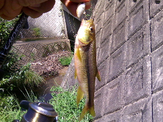 <詳細> 『泊りでGO!GO!part2』 〜夏休み豪華スペシャル〜 (前編) それにしても暑い。そして熱い。そう、マンサーのフローターバッシングだ。 今回はマンサーで一番フットワークの軽い(ヒマな?) 僕の大型連休恒例の泊り込み釣行だ。前回は2日分まとめてレポしたが、 今回は釣果も5段飛び位に上がっているので(前編)(後編)に分けてお届けしよう。 さて、今回向かった三重県にはマンサーのフローターポイントは大きく分けて 現在、2つのエリアが有るが、まずは「遠い方」のエリアへ。 ファーストチョイスは「スタック池」だ。 ここへ向かうときはいつもドキドキ、ハラハラする。 ヤブに囲まれた細いデコボコ道を行くのだが、何かが道を塞いでたら バックで戻るしかない。しかも小さな池なので 「先行者が居ませんように…」と、祈りながら車を進めていく。 なんとか無事到着。ここまでくれば車を方向転換させるスペースもあるので一安心だ。 近くの「大きな池」のほとりに車を停めて、フローターを担いで歩くのだが、 フローターを膨らませていると「大きな池」の方から「ガボッ!」と水の音が。 見るとバスがベイトを追って盛り上がっているではないか。 早速、岸からペンシルをなげると小型ながらあっさり3本ゲット! 現在、大減水中のこの池でもバスはメゲず頑張っているようだ。 今日は期待出来そうだ。 いい気分で「スタック池」へ向かう事が出来た。 が!肝心の「スタック池」が全くパッとしなかった。 シャロークランクとアイバムシでチビを数匹釣っただけで ポイントを替える事になった。 それにしても今年はこの「スタック池」はサッパリダメだ。 しかも帰り道は上りなので気を抜くと本当に「スタック」しかねない。 次回こそはバス達にドキドキ、ハラハラさせて欲しいものだ。 次は「小学校池2」にやってきた。ここに浮かぶのはゴールデンウィーク以来、 まだ今日で3回目。それほど釣れてる訳でもないが、この周辺の池の中ではわりと 水位、水況とも安定している。サイズはともかく何匹かは釣れるだろう。 それに今日の釣りで楽しみなのは、このエリアで初めて「アイバムシ」を使う事だ。 「イモリダム」でその実力を見せつけた今年注目のニュールアー、 森に囲まれ、護岸以外は全面オーバーハングのこの「小学校池2」には バッチリコに違いない。 が、「1投目からファイナルウェポン」てのも大人げ無いので、 まずはクランクとトップで探るがノーバイト。 まぁ、ある程度想定してた事だ。 ここで満を持して「アイバムシ」登場。 「ピピピピピピッ!」と、オーバーハングの中へ滑りこませる。 決まった…「あ〜あ、釣れちゃった…」と僕。 が、出ない。WHY?何故?そしてついに最奥の池の幅の狭いシャローエリアに やってきた。流れ込みが有る訳でもない浅いワンドチックな場所だ。 こんな真夏にはどうだろうか? 「進めば進むほど浅くなるよ…こりゃ奥へ行くほど水温もどんどん高くなって…こない!」 本なんかによると夏にワンドは水通しが悪いので×なのだが、 ハッキリとした流れ込みも無く、そもそも池全体がワンドみたいなモンで(?) しかもオーバーハングに囲まれた野池ではこういう場所のほうが太陽が遮られて 水温が低い様だ。実際、ここは良く釣れた。 「シェードの中のシェード」的なポイントにはかなりの確率でバスが着いていた。 この42cmもまさにそんな場所から出た。 この三重野池の「遠い方」のエリアでは初の40アップなので嬉しかった。 その後も20アップのギル混じりで好調にヒットを重ねる。 戻りながら最初攻めた岸の反対側を釣っていると 太い木が水中に倒れ込んだポイントに着いた。 最奥ほど水温は低くないが一応「シェードの中のシェード」だ。 見逃す手は無い。スキッピングでオーバーハングの奥へ。 アクションを付けながら引いてきて倒木の横に来た時 「コポッ」と「アイバムシ」が吸込まれた! 「ヨッシャ〜!」なかなかの突っ込みを見せるが、 こっちはミディアムアクションのベイトタックルに16lbラインだ。 最初はやや強引に障害物から引き離し、その後は慎重にランディング。 45cm!あまりサイズを期待してなかったこの池で 40アップ2本はまさに「嬉しい誤算」だ。やはり時代は「虫」なのか? その後は少々のんびりモードへ突入。 最近のフイッシングレポで岡本君がカメだのイモリだの 余裕のレポを見せつけているのに対抗して僕もひとつ。 はい、カワムツです。 て、普通に釣ってんじゃん。心は余裕でも腹は減る。 今日の楽しみの一つでもある通称「クックドゥードゥルドゥー共和国」 で焼鳥を堪能した。「松阪地鶏」は臭みも無く以外と柔らかくうまかった。 コリコリした食感の「鳥皮」はコラーゲンたっぷりで日焼けした肌に優しいだろう。 腹もふくれた事だしフローターを出したいが、この暑さだ。 まだ明日もあるし、気分的にはあと一ヵ所か。 オーバーハングだらけの「ハード池」と、減水中で、普段水中の地面がムキだし
