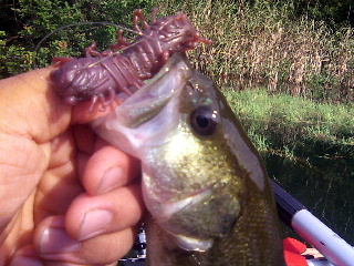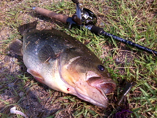 <詳細> この道もすっかり通い慣れたもんだ。 しかし、今回の釣り場選びは非常に悩んだ。 雨不足だろうこの三重方面は、お盆休み中に池によっては、 水量、釣果ともやや落ち目なのを確認していたからだ。 こんな時はインレットの水量の安定では最高の「YOUダム」が最も手堅いが、 木曜日〜金曜日の雨で、「何かが変わるかも…」と、結局、三重の野池巡りへ。 ここ最近、続けて(自分的には)ナイスサイズを釣っていたので 余裕のゆっくりめのスタートとなった。 まずは約一ヵ月ぶりの「パット池」へ。 あえて最近釣れていた「小学校池2」や「ハンミョウ池」を封印したのは 釣れるのが分かりきっているから(よっ!男前っ!)。 今日は最近チェックしてない池を見たかったのだ。 「パット池」に着いてみると先攻者が3人。 ちょっとのんびりし過ぎたか?が、みんなオカッパリのようだ。 そそくさと入水。水位は満水、それでいてイヤな濁りも無い。 この前の雨が絶妙の量だったのだろう。 が、相変わらずのノーパットだ。 変わりに、水没した稲系統の雑草がシャローエリアで ちょっとしたカバーを形成している。 シャローエリアが7月の台風前に長い期間、陸地だった事をうかがわせる。 まずは護岸付近でシャロークランキン。1投目で「スピードキッド」にヒット! チビながらいいスタートだ。次は「ダイイングフラッター」でトップを探る。 これも数投目でヒット! こんな感じで順調にキャッチしながら「雑草パット」状態の最奥のシャローへ。 ここはトリプルフックを受け付けてくれないので 「ウルトラバイブスピードクロー」でグラビンバズ。 と、ガンガンアタックがある!バスのサイズが小さくなかなかフッキングしないが、 それでも結構な数をキャッチ出来た。 さあ、ここでサイズアップを期待してニュールアー「愛場ムシ」の登場だ。 なんの事はない、「アイバムシ」を2つくっつけて、 「今まさに、この場で愛を確かめあっている真っ最中の無防備な虫」 を演出しているのだが(おやじギャグ〜)カバーエリアにおいて 「アイバムシより強く」「フロッグより優しく」アピールしてくれるだろう。 さすがに投げやすい。速攻でヒット!が、相変わらずチビバス。 「いや、コイツのポテンシャルはこんなもんじゃないはずだ!」と 使い続けるが、3匹釣ったところで後ろの一匹がどっかに飛んでいってしまい 「独り愛場ムシ」になってしまった。 年中「独り愛場ムシ」の僕もせつなさが込み上げてきた。 さて、次はどこへ行こうか。 バスは未確認だが去年、この近くの結構大きな池を覗いたのを思い出し 行ってみることに。ここは野池に有り勝ちな護岸が斜めに差込んだ形ではなく、 岸が垂直で1m程落差がありフローターの入水が困難なのだ。 払い出し付近はなんとか降りれそうだが、要は入水する価値があるかどうかだ。 とりあえず岸からグラビンバズでチェック。 オーバーハング下からもバスからの応答はない。 「ダメかなここは…」と、その時、水面付近でライズするオイカワの近くに 20cm位の魚がいるのが見えた。 「バスじゃないな…巨大化したオイカワか?まさか『あの魚』か?…」 試しにグラビンバズを通すと、いきなり「ビシャッ!」と、アタックしてきた。 フッキングしなかったが、僕はこれでヤツらが「あの魚」である事をほぼ確信した。 「バグミノーバジー」で水面を引くとヒット!やはり「あの魚」ハスだった! しかしなんでこんな所に…。 まぁ、コイの放流か何かに交ざってたまたま入ってしまったんだろう。 たまたまと思いつつ、「もっと居ないかなー」と、 7gのメタルジグを投げたらまたヒット! が、これはバレてしまう。結構繁殖しているのか?と、またメタルジグをキャストし、 ジグを足元まで巻きとってきた時、驚くべき光景を目撃した。 7〜8匹のハスが入れ替わり立ち代わりジグの後ろで「ギラッ!ギラッ!」と、反転を 繰り返しているのだ。 この瞬間、僕の中でこの池が「入水しにくい池」から「入水しなければいけない池」 にきり変わった。少々手間取ったが無事入水。 が、そんなに甘くなく、バレたり、フッキングしなかったり 結局フローターでハスを釣る事は出来なかった。 徐々に反応も少なくなっていった。 琵琶湖でも感じた事だがハスは基本的にライズを釣る魚だということ。 スイッチが入った時とそうじゃない時の差が激しいのだ。 しかし楽しみな釣り場が増えた事に変わりはない。 今度はスピニングタックルとレッドペッパーマイクロでも持ってこよう。 あと、この池の駐車場所は昼間でも木々に囲まれ、わりと涼しいのが嬉しい。 珍しく「サワガニ(?)」がヒョコヒョコ歩いている。 眠いのでここで少し寝る事にした。 目覚めてからはエリアをかえ「H池」へ。 こここそが今回の雨で「何かが変わるかも…」 と、最高に期待したポイントだ。去年52cmをあげてからは 鳴かず飛ばずの日々続き。 が、今年の春もかなりの50アップを目撃しているのでタイミング