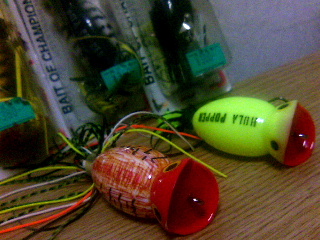 <詳細> うっすらと開いた瞳に写る、窓ごしの青空… 頬を撫でる風と小鳥のさえずりが僕を覚醒へと導いてくれる… 寝過ごした!! はぁ〜… 年に何回かは、やってしまう。が、今日は幸い、単独釣行だ。 かつて苦楽を共にした「チームマズメofマンサー」は 「アオリイカ好調!」の報せとともに解散の危機にたたされたのだった。 もうAM7:00だ。彼等は今頃、バスなんて忘れて「これでもか!これでもか!」 と、エギをシャクリまくっている事だろう。 僕だけがバスに残り、永遠の夢追い人となり、まだ見ぬエルドラドを目指し、 1人旅立つのだった。まぁ、今さらジタバタしても仕方ない、 今日はのんびり行くとしよう。最近、朝方は徐々に秋めいてきたようだ。 こんな清々しい日にピッタリのBGM、ザ・ミレニウムの「BEGIN」。 ザ・ミレニウムとは1960年代の伝説的ソフトロックグループだが、 このアルバムを1枚出しただけで解散してしまった、なんともやるせない人達だ。 これからすると、期間限定解散(期間限定結成?) の「チームマズメ」はまだマシか…。 ついさっき「まだ見ぬエルドラドを目指し…」なんてブッこいておいてなんだが、 最初のポイントはお馴染みの「H池」。今日はさすがに新規開拓はおやすみだ。 フローターをかついで歩いて行くと「!」池の水がオーバーフローしている。 前回の52cmを釣った時の記憶がよみがえる。 「こりゃ、釣れちゃったかな…やれやれ、朝から親指ヒリヒリか…」 と、言いつつ池の手前でフローターを置き、四つん這いで池に近付く僕。 が、そんなに甘くなく、そぉ〜っと覗いても 払い出し付近にはカメさんが居ただけだった。 まぁ、いいさ、フローターの上から釣ったほうが楽しいからね(その割には必死) 池に浮いてみると、やはりすでにヒンヤリしている。 水中はすでに秋に突入しているかもしれない。 まずはシャロークランクで岸際をチェック。 「デュエル・ロングキャストミッド」を水に浸かった木の枝の張り出しの中に ブチこみ、「ブリッ!」と、抜け出した直後にヒット! たいした型じゃないが、気持ちの良い釣れ方でゴキゲンだ。 同じパターンでもう1本追加。うん、やはり秋らしい釣れ方だ。 今日はクランクの日か?が、後が続かない。 最近のヒットルアー「ダイイングフラッター」も投入。が、バイトは少ない。 そんな感じで悩みながら最奥のシャローエリアへたどり着いた。 「ダイイングフラッター」をロングキャスト。 何回かアタックがあり15cm程のチビをキャッチ。 ふと、気付くとフローターの周りに2cm程のバスの稚魚の群がいる。 本かなにかで「水温の低い山上湖ではスポーニングはダラダラと長い期間続く」 と、書いてあったが、ここもまさにそうなのだろう。 「このシャローエリアはチビばかりかなー…」と、思っていたところ、 「ボフッ!」と激しい音と共に、スローなジャークを繰り返していた 「ダイイングフラッター」が吸込まれた。ヒット!マズメ規格で40cm程。 僕のヤツは人一倍弛んでいるので37〜38cmってとこだ。 ようやくまともサイズにホッとする。 戻りながら今度はミディアムクランクでやや沖目の深い層を探り、 念の為カバーの奥をテキサスリグで探る。カバーの奥は全くアタらなかった。 かと言ってミディアムクランクにもアタらないが、 今日のバスのポジションはやや沖目なのを感じていたので信じて投げ続ける… と、ヒット!なかなかの重量感あるファイト!40アップか?と思ったが 先程とほぼ同サイズ。が、体型はまさに「H池クオリティ」と言える。 ヒットルアーは「ノリーズ・エンジェルシャッド」。 信じて投げ続けれるナイスなミディアムランナーだ。 上陸した時はとうに昼を過ぎていた。 コンビニで遅めの昼食をとっていたら元チームマズメ代表岡本君から 「胴長25cmのアオリゲット」のメールが入った。 この時期にしては、と、言うかマンサー的にはかなりのナイスサイズと言える。 僕もイッパツかましたいが次に向う 「地図に乗って無い池」は最近、激チビの嵐だ。 25cmアオリに並ぶインパクトのバスを釣るのは一筋縄ではいかないだろう。 しかも池に着いてみると結構、減水している。 すでに稲刈りも済み、池に水を貯める必要も無いのだろうか? 早速入水して「ダイイングフラッター」をメインで釣っていくが やはりバイトは減っている。まぁ、それでもかなり釣れるのだが。 しかし相変わらずチビばかり。 一般的にダブルスイッシャーはランカーキラーとされている気がするが、 スレてない場所では完全に数釣りルアーと化す様だ。 デカバスが気付く前に、闘争本能全開のチビバスがバイトしてしまうのだろう。 そこで今日はジャミ避け効果を期待して「フラポッパー」を多用してみた。 ボチボチアタるがフッキングしない。 カバーの僅かな隙間でジックリネッチリポッピングするために ダブルフックのワンフックに改造しているからだろう。 ルアーを一飲み出来るサイズのバスなら問題ナシのはずだが 
