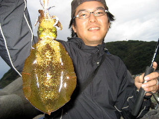 <詳細> 今シーズン初の北陸エリアだ。 世間様の評価は“不調”やら“遅れ気味”だのと、ネガティブなレスポンスだが、 さて実際はどうだろう?? 「現場第一主義」のチームマンサーとしては、この眼で確かめないうちに、 耳年増な評価をくだすわけにはいかない。 ココ数年、北陸エリアでもっとも信頼を置くポイントに到着。 で、あっさりわかりました。 すいません、「皆さんの言うとうり」です(泣) 釣れることは釣れるのだが、こんなサイズばかり。 たまにこのサイズでなんとかキープ。 ただ、ひとつ言い訳を言わせてもらうと、風と波がマックスパワーでした。 ツルツルテトラは「+波」と、どこぞの商品のパワーアップ版のようになってたし、 旅館横のテトラ帯は「東宝」状態でアンタッチャブルだ。 旅館下の突堤もたまに波がザバーっと打ち上げてくる。 そんな中、ウェーダーをガッツリ履いてやってるヒートガイが居た。 しかし、ビッグウェーブが近付くたびに、まさにエギに接近するスレイカのごとく 近付いて〜離れて〜を繰り返し、ちっともキャストしない。 「も〜!なんのためにゴム長はいとんの!」とクルマの中から突っ込んでおいた。 エギングにとっては色々とネガティブなファクターが重なった。 でも、水野が「オレ、やれん。。。」と、●グソを嫌がって、 公衆トイレまでクルマを走らされたのは、本日の結果にはまったく関係ない。 その後、“セカンドウェーブ”が来て、さすがに「もう一度」とは言えずに、 しかたなくテトラの隙間で波におびえながら“放流”したことも、むろん関係ない。 ジュンちゃんの舌打ちが聞こえて来そうだが、水野をゆるしてやってほしい。 彼はキミと違って“ビギナー”なのだから。 むしろ、最近忘れかけていた“恥じらい”と言うものを思い出させてくれたヨ。 そんな中でも(どんな中だ?)“これぞランガン”って感じで走り回り、 お互い10ハイほどは釣ったかな。 使用エギサイズも3.0〜3.5がメインで、水野なんかは3.5の急速を使ってた。 オレはもっていなかったので、このときは水野に3ハイほど先行されたね。 意外だったのは、フォロー中のフォローポイントのマンサーサーフで一つも 捕れんかったこと。 一方、マンサー風裏砂浜エリアはあいかわらず群れでいて、 表層の“幅広丁寧ダート”でワっ!と涌いてくる。 何ハイか連発で捕れた。 全体的にシブめの一日だったが、 状況しだいではソコソコ釣りになりそうな感じはありました。。 ま、大平洋が台風でポシャったときのフォローくらいだけどね。 はぁ〜、今回もいつもの“アレ”が必要だな(泣) <タックル> OKAMOTO ■ロッド:カラマレッティープロトタイプ882ML−SJ ■リール:イグジスト2506<RCS55mmエギングハンドルノブ仕様> ■ライン:バリバス アバニエギングMAXパワーPE<0.6号> ■リーダー:シーガーグランドマックス 1.5号 ■エ ギ:ヤマシタエギ王Q<3.5寸> MIZUNO ■ロッド:バリバス ヴィオレンテ 86SL ■リール:イグジスト2500<RCSエギングハンドルノブ仕様> ■ライン:バリバス アバニエギング<0.6号> ■リーダー:フロロカーボン1.7号 ■エ ギ:ヤマシタエギ王Q速<3.5寸>