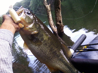 <詳細> 『泊りでGO!GO!part5』 〜秋の収穫祭〜 【1日目】 「花か…いいもんだな」 名前は知らないが、今の時期、どこにでもこの花が咲いている。 今まで素通りしていたが、気持ちに余裕が有るからだろう、 立ち止まって 撮影してみる。 「うーん、この花のヒョロッと伸びた感じを強調したナイスなアングルですな。 見る者の心を瞬時にその場所へと連れて行ってくれる事だろう…て、 自分で言うなよ…」 こんな調子だ。 が、今日は午前中は仕事だったので気持ちに余裕はあっても時間に余裕はない。 向う先は最近、50アップも出て、まさに今、咲き誇る「H池」。 でも、おそらく簡単に釣れる時期はもう、よくて2週間位だろう。 この今期5度目の泊り込み釣行でなんとかもう一花咲かせたいものだ。 そして、「H池」に到着。まだツクツクボウシが鳴いている。 去年の今頃、この池はすでに「Xデー」を迎えていたはずだが、 先週53cmが出ているので期待は高まる。 やはりまずはシャロークランクをキャスト。 しばらく流しているとやっとチビバスがヒット! が、尻フックに辛うじて掛かっているだけ。活性は高くないかも。 カラーを替えたが、もともとそんなに数が出る池じゃないので カラーチェンジなどの効果は分かりにくい。 クランクのショートバイトを「センコー4in」のテキサスでフォローしながら 最奥のシャローに着いた。 活性はあまり高くないが、ここは「ビッグバド」にチェンジ。 最近買ったボーンホワイトマテリアルの物を試す。 ブレードに「ノリーズVラウンド」をおごった贅沢バドだ。 軽いため、バドカラーより飛ばないが「♪カキクケコカクキ…」 音は凄い。僕がバスなら逃げる。 そして岸辺の底が見えそうで見えない浅場にキャスト。 着水と同時に 「ドッボオォン!!」と凄まじい音と水柱が。 あまりも凄かったので浅瀬に居たコイがビビッて逃げたか?と思ったが、 何故か左手は反射的にアワセをくれていた。 ヒット!ズッシリと重い引き!イッたか?そしてハンドランディング! 51cm! 2週間連続で50アップゲット! …しかしバスも大変だ。 こんなマイナーな池でここまで追い詰められた事は無かっただろうに…。 「こんなに釣っていいの?」 いいんです。僕はわかってる。 どうせ「三振前のバカアタリ」と、いう事を。 その後、「センコー4in」テキサスで40弱を追加して終了。 そして街へ。なんか妙に暗く、サビれた『モスバーガー』で夕飯にすることに。 期間限定「シーザーサラダバーガー」は、何故か「うまい棒サラミ味」の味がした。 まぁ、僕は「うまい棒」の中では「サラミ味」と「チーズ味」が好きなのでOKだが。 『泊りでGO!GO!part5』 〜秋の収穫祭〜 (シーバス編) シーバス。 言うまでもなく海の代表的なルアーターゲットだ。 そのバスとは違った「推理ゲーム」にマンサーメンバーの多くも、 一度はハマったものだ。 シーバスを確実にキャッチするには潮の動き、風など考える事は沢山あるが、 やはり最大のキモはベイトフィッシュだ。 ベイトが動けばシーバスも動く。 逆にベイトの動きを読めば、このとうり高確率でキャッチできるのだ。 …て、これ、一応シーバスと呼んでいいんだよね?いいんです。 『泊りでGO!GO!part5』 〜秋の収穫祭〜 【2日目】 翌朝は三重野池の「遠い方のエリア」へ移動した。晴れているが霧が凄い。 まずは「チビ池」を目指す。 が、ふと、普段はサオを出す事のない大きな池が気になり覗いてみる事に。 僕の7月のレポでの、この池を舞台にした 「天然フローター軍団」との心暖まる交流は記憶に新しい。 何故、急にここで釣りをする気になったのか? 推理を超えた何かが働いたのか?いきなり「ビッグバド」に「ガボッ!」 これが43cm! ナイス棚ボタだ。 いい気分で「チビ池」へ。 去年、50アップをバラしているので今年も期待していたが、 ここまで最大で35cm位。数なんて5匹位しか釣ってない。 そして今日、 「チーン…」 はい、さようなら。「Xデー」がやって来たようです。 次はエースポイント「小学校池2」だ。 護岸付近にはチビバスがチラホラ見えたが、奥へ行く程濁っている。 さっきの「チビ池」もそうだったが、雨なんてそんなに降って無いだろうに 妙に濁っているのだ。ターンオーバーか?あらゆる方法を試したが、 「チーン…」 はい、小学校池2終了です。 まぁ、終了と言ってもしばらく期間をおけばまた釣れるだろうが、 その頃には水温がさがり、フローターを浮かべる事自体がキビシイだろうから 事実上、今年は終了という事だ。 今日は、やたらと車道にカマキリがいる。 そういえば去年、急激に釣れなくなった日も車道にカマキリが沢山居た。 おそらくこの時期の夜風が色々なものに影響するのだろう。 『泊りでGO!GO!part5』 〜秋の収穫祭〜 (メッキ&チヌ&ナイトバス編) 次のポイントは色々悩んだ結果、メッキ&チヌを狙って少し足を伸ばす事に。 車を走らせていると以前から気になっていた野池にバサーが居たので覗いてみたら、 何故