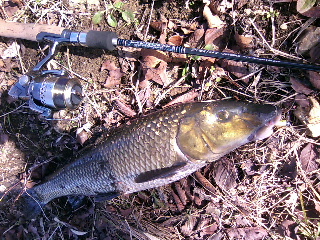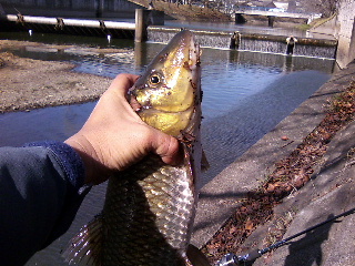 <詳細> 僕は傷ついた小鳥だった…。 無理もない、新年早々、夏にはあれ程愛想の良かったバス達に 完全に無視されたのだから…。 この心を癒す事が出来るのは一つしかない。 そう、「バクる」事だ。 しかし、それにはこの時期のバスでは難しい。 てか、無理。 年中同じような場所に居て、寒かろうが、雪が降ろうが 愛想良く迎えてくれるヤツがいい。 マンサーメンバーの何人かは「ニヤリ」として 「あの魚の事だろ?」と言うだろう。 そう、SPOゴイ、いわゆるニゴイだ。 そんな訳で今年も癒しを求めて岐阜方面へむかう事となった。 最初のポイントは「SS川」。 今日は風が強いので、釣り易さを考えてのチョイスだ。 ポイントに向う途中、車を走らせながら川を見ていて少々不安が。 「水が少ないな…」 さっき、ニゴイはいつでもゴキゲン、みたいな事を書いたが、 そこはやはり自然の生き物。イマイチな時もある。 特に水位の低下はヤツ等を不安にさせてしまうようだ。 まぁ、釣り自体はしやすくなるのだが…。 ポイントに着き、ダーダー下を覗くと、居るわ、居るわ… て、全部本ゴイだよ…SPOゴイはどこかな〜…居た! 土煙を揚げながら「SPO、SPO」してござらっせる。 すかさずキャスト! が、ルアーに反応するも寸前で「プィッ」と食うのを止めてしまう。 もう一度キャスト!が、着水点がSPOゴイに近過ぎて失敗。 逃げられてしまった…。 気を取り直して別のヤツを探す…また発見! 慎重にキャスト、ボトムベッタリで繊細にシェイク、シェイク…すると、 「SPO!」 SPOった! フッキングも決まった! のたうつようなファイトだ。ここのSPOゴイのファイトの良さは 定評があったのだが、コイツはイマイチ。 まぁ、なにはともあれ今年の初フィッシュだ。無事キャッチで一安心。 55cm程か。 何故か片目が無い…。 一匹釣ってしまえばお気楽なモンだ。 リラックスして楽しめる。またまた発見!&キャストっ! 「SPO!」 「…SPOったね、親にもSPOられた事無いのにィ!」 と、ガラにもなくガンダムネタまで出てくる始末。 さっきよりチョイデカ。 さて、ここまでのヒットルアーは通称「デビル」オンリーだが、 自称ニゴイストとしては色々試したくなる。 ここ10年程で、バスの世界ではすっかり定番になったスモールラバージグだ。 トレーラーは「ストローテール」のデカい方のヤツ。 アッサリヒット! ガード付きでもフッキングは問題ないようだ。 最初に心配したほど活性も低くない。 今度はトップで食わせようと「バグミノーバジー」をチョイス。 フレッシュな魚を求めて上流へ歩いていく。 しかし上流へ行くほど風が吹きっさらしの場所なので、 軽量プラグでは狙った所に投げるのは難しい。 良い所に着水しても風で糸が吹かれてまともに釣りが出来ない。 「このォ〜!」 「させるか〜!」 と、アムロばりに頑張ってみたが、チェイスだけでトップではキャッチ出来きず。 その後は「デビル」で数本キャッチして終了。 「ゴメンよSPOゴイ…僕にはまだ帰れる所があるんだ… SPOゴイにはいつでも会えるから…こんな嬉しい事は無い!…」 と、SS川を後にした。「バクる」とまではいかないまでも、 どうにか傷ついた羽根を癒す事は出来たようだ。 この調子で冬バスもイケちゃうか?…ムリだろな〜…。 ※ ※ さて、今回はルアーについて少々。 レポに出てきた「デビル」を知らない方の為に解説しよう。 まぁ、何の事は無い、いわゆるジグヘッドリグなのだが、 セットするワームが肝心なのだ。ワームをそのまま付けるのではなく、 大きめのワームをコマ切れにして使うのがミソ。 「グラスミノーL」あたりが太さ的にも、エサ持ち的にも使いやすい。 速めのフォールとキビキビした動きを出したいので、 あえてテールは使わないのがキモ。 ジグヘッドは「デコイ・マジックミニ」がお気に入り。 この組合わせは見事に「ホタルの幼虫」を演じきってくれるハズだ。 て、そんなモン見た事も無いけどね〜♪ まぁ、とにかくニゴイングに行く機会があれば作っておいて損はない。 「困った時のデビル頼り」 になる事だろう。ちなみに今回のレポはネタに困ったので、 「困った時の定番ネタ(ガンダム)頼り」 になったわけだ。 まぁ、SPOゴイの「デビル」に関しては、最近では「困った時の…」ではなく、 一投目から投げちゃうけどね〜♪ 「スプーンで釣ってこそ真のニゴイストだ!」と、主張する、 デビル嫌いの岡本君と宮ちゃんあたりは、そんな僕にこう言うだろう。 「ボウヤだからさ…」 〈タックル〉 ■ロッド:テーパーアンドシェイプ・フレックスハント63UL ■リール:ステラAR2500 ■ライン:ナイロン6lb ■ルアー:デコイ・マジックミニ2・5g+エコギア・グラスミノーL(デビルセッティング)