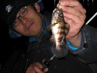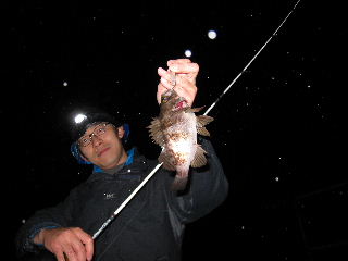 <詳細> 「雨の後って、メバルの活性があがるんだよネ」 なんて、いかにもっぽくブっこいてたのはどこのどいつだ〜い? ………。 オレだよっ!! だってさ、雨が降って活性が上がるっての、どの釣りにも共通じゃん? アマゴなんてスゲーよ、雨ノ魚っていうんだよ? 海だってさ、なんかこー、淡水と海水が混ざりあってさ、刺激しあうじゃん。 そーするとさ、プランクトン的なモノがワサワサ涌いてさ、 それを食べるアミの類が寄ってきちゃって、ベイトフィッシュがダ〜っと来て、 そいつらを狙ってメバルがどわ〜っと。。。 って思うじゃん?ていうか思いたい! でもね、、、 釣れねっ! 見た目スッゲーいいのに、、、 釣れねっ! ぜんぜん濁ってないし、風もソヨソヨなんだ。 イタダキ!って思うじゃん? でもね、 さっぱり釣れねっ! 誰だよ?釣れるって言ってたブタ野郎は?! だからオレだって。。。 たぶんさ、“推理は間違ってない”んだよ。 でも、雨のヤツやり過ぎなんだよ。 なんでもやり過ぎはよくないよ。 「むしろマ〜イ!」だね。 メインのエースポイント周辺は全滅。 唯一ヒットしたのは60cm近いシーバスだが、足元でラインブレイク。 プラグを丸のみしてました。 あとは、アマノにヒットした良型のなにか。。。 バレてしまったのだが、たぶんチヌだろう。 となりで見ていたけど、ロッドの“たたき方”がメバルのそれじゃなかった。 後で気が付いたが、両方とも淡水に強いサカナ。 どう?この推理。 さて、そろそろ釣れた話したいんで、途中ショートカットして、 むか〜し良く来ていた港や砂々エリアに逃げてきた。 このエリアは少々型がアレなんだが、数はいるところだ。 昔シマとよく待ち合わせした港で、 ついに待望のファーストヒット!! ![]() なんか文句ある? すると、喜びに浸っているのもつかの間! 暗闇から「きっ、キタ〜!」 とアマノの歓喜の叫び声が!! だから、文句ある? 25cmの以上のメバルに特化したタックルでこのサイズ釣るのって、 スゲー難しいんだよ。 ワイルドバットフォーマル(?)なんだよ。 そして、今までの経験と知識をすべて出し切って出した答えが、 コレだぁ〜。 ワンッ!トゥッ!スリ! ワームちぎっただけじゃん。。。 と思ったそこのアナタ! 甘い! マクドナルドのマックグリドルくらい甘いよ! だって、ココからさらに切ったもん。 その画像は釣権コードに触れるためお見せできませんが、 まさに「アンサーフォーユー」だったよ。 でもさ、マンサーいちのハードプラッガーと呼ばれとるこのオレが、 このままおとなしく引き下がるとお思いかい? アマノがゴム遊びに興じる中、ひとり信じて投げ続けた、 シュガーミノーリップレス“マットクリアカスタム”についにキタ! ![]() おお〜!! んんっ?? う〜ん、まぁ…。 どお?このコメントに困る絶妙なサイズ。 たぶん21cmくらい。 とうぜん海へおかえり願った。 ちなみに、書いてなかったけど、ずっと雨が降っていまして、 この時点で、ダークグレーのマンジャケは、 限りなく黒に近いグレーに変色してます。 おまけに、ウエットコンディション下でのノギング (ティッシュの扱いに細心の注意が必要) という、上級者向けプレイまでこなし、心身共に、 「……体力の限界っ!」 となり、撤収。 久々の貧果でヘコむね。 しかしさ、今年の春は良く雨が降るね。 今週末も雨がらみだよ。 あそうそう、でもね、雨の後ってメバルの活性が上がるんだヨ。 またか!! <タックル> OKAMOTO ■ロッド:チームマンサーオリジナル73 ■リール:イグジスト2506(RCS45mmハンドル仕様) ■ライン:バリバスライトゲーム PE0.4号+シーガーグランドマックスFX1.0号 ■ルアー:シュガーミノーリップレス他 AMANO ■ロッド:フィネッツァプロトタイプ762UL-S ■リール:イグジスト2506 ■ライン:ヨツアミG-Soul PE0.4号+シーガーグランドマックス1.0号 ■ルアー:マンサーエースプラグ他