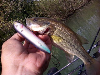 <詳細> 「さあ、行くか…」 さすがにこの時期になるとフローターの準備も慣れてくる。 今年はかなりハイペースな釣行数なのでなおさらだ。 いつの間にか「マンサー・フイッシングレポ」も随分増えた。 基本的に「レポ」を書くのは楽しいのだが、 「激ショボ釣果」の日のレポは少々、ツラいモノがある。 自分の実力というものをあからさまにさらけ出してしまう訳だから。 でも、「来シーズンのデータ」と思えば、ショボいなりに 価値は有ると信じて今回もレポる事にしよう(て、事はショボかったんだな?)。 それでは、贈ろう。 “メッセージ・フォー・マイセルフ” 今回のファーストチョイスは「パット池」だ。 「パット池は水温の上昇が早いからトップでイケるよ〜(去年の自分より)」 そう、去年の今頃もそうとうなショボさだったが、少しは役に立っている訳だ。 池を覗くと、35〜40cm位のバスがペアでフラフラ泳いでいる。 この春の新婚カップルなのか? 「新婚さんいらっしゃ〜い」 と、ラバジを投げるが、逃げてしまった… まぁ、いいや。 よろしくやっとくれ。 元気なバスちゃんをイッパイ産んどくれ。 「自分の心配をしろよ〜(何年後かの自分より)」 入水後は、前回42pが釣れた岬の脇へ。前回も濁っていたが、更に濁っている。 それでも少し位アタッてもいいだろうにサッパリ。 今度は最奥の立ち木ワンドへ。 去年の僕に従いペンシルを投げる。 「スーパースプークJr.」だ。 養老エリアでも、過去にかなりの実績を築いた定番ルアーだ。 「て、言う程釣ってないよ〜(過去の自分より)」 着水してアクションを与える。相変わらず見事なドッグウォークだ。 「本当にドッグウォークする犬なんて見た事無いよ〜(チェックの細かい自分より)」 すると突然、バスがアタック!がノらず、 3回目位のアタックでようやくフッキング! 激チビながら、今年のトップでの初キャッチ。 もう少し大きければ言う事ないが。 「贅沢だよ〜(ボウズで帰る自分より)」 その後は色々試したが、ワームに軽くバイトがあった位でノーキャッチ。 場所を変え「ハンミョウ池」にやって来た。 しかし凄い増水だ。去年のGWは減水に泣かされたが、今年はイケそうか? 「でも、今の時期の増水ってのも、あんまり良くない気がするよ〜(今年の自分より)」 …うん、ちょっとイヤな予感はしてたけど全くノーバイト。 まぁ、仕方無い。 これもデータの一つだ。 帰ろうとフローターを担いで歩いているとヘビが横切っていった。 妙にエラが張っている…マムシだ! こんなの踏んづけたらエラい事だ。 自然相手の遊びは、時に怖いものなので気を付けないと。 車に戻り、草むらで用を足していると、また居た!マムシだ! さっきより明らかにデカい! しかも至近距離だ! 逃げようが無いので僕は先手必勝とばかりに、とっさに首を捕まえた! …が、マムシは全然抵抗せず…しかも温かい…なんか変だ…。 よく見たら「自分自身のマムシ」だった。 コイツは、噛ぶりつかれる事はあっても、噛み付く事は無いので安心だ。 「ショボいレポを下ネタで誤魔化すのは良くないよ〜 (デカいバス釣ってネタに困ってない時の自分より)」 次はエリアを変え「地図に載ってない池」にやって来た。 池の下にある、池からあふれた水が溜まっている所を覗いたらザリガニが何匹か居た。 しかも活発に動いている。ザリシーズン到来だ。 「ここのバスは、ザリガニ大好きだよ〜(去年の夏の自分より)」 バッシングにおいて「マッチザベイト」がどこまでアテになるか分からないが、 ここはザリガニを意識してルアーをチョイスした。 過去にはそんな素直なルアーセレクトが功を奏した事もあるが…。 ノーバイトのまま最奥にたどり着いてビックリ。 パットではない。 全部木の葉だ。数日前にかなり荒れたのだろう。 濁りもキツい。色々頑張ってみたが結局ノーバイト。 やはり春は難しい。 まさに、 だ。 ふと思ったのだが今回のレポは「来春の自分」へのメッセージのつもりだったが、 今回の釣り自体が「過去の自分」に支えられていた事に気付いた。 「その『過去の自分』が大して釣れて無いんだから意味ナシだよ〜(冷静な自分より)」 今回はショボかったが最初に書いた通り、これもデータの内だ。 今の釣行で得た全てが血となり、肉となり、来春の爆釣へと繋がるはずだ。 「鬼が笑うよ〜(来春より今回釣りたかった本音の自分より)」 〈タックル〉 ■ロッド:フレックスハント63M ■リール:アンタレスAR ■ライン:ポリアミドプラス16lb ■ルアー:スーパースプークJr.