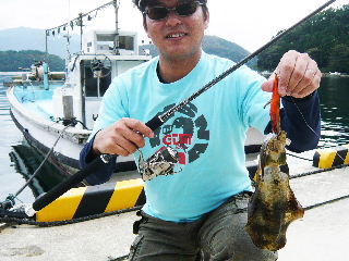 <詳細> 今回は「マンサー46会」でも珍しい組合わせのトリオでの釣行。 2人の考えている事は容易に察しがつく。 今まさにチームマンサーに押し寄せている 「ワインド」の波に乗り遅れないように、だろう。 更に、水野君から 「ロッド“全部”持ってきて」との御指令が。 まぁ、なにかと楽しみは多そうだ。 夜明け前からエースポイントの確保に成功し、 各自それぞれ、エギだの、ジグだの、ミノーだのを試すが全然ダメ。 気持ち的には、明るくなってからのワインドが本命なので、悔しくともなんともない。 そうこうしているうちにボチボチ明るくなってきた。満を持してワインドをキャスト。 「これだろ?これが見たかったんだろ?」 と、2人に見せつけるようにガンガンしゃくる。 僕の生み出す、激しいグルーブ感に戸惑いつつ、2人もワインディング。 3つの「マナティー90」は、水中で、逃げ惑うベイトフィッシュを 演じきったハズだが、ノーバイト。 このテの釣りでノーバイトは3倍疲れる…。 ポイントを通称「もとカサゴ牧場、今やフグ牧場のチョイ奥」に変え、 3人とも散らばって、それぞれやりたい釣りを試す。 僕はもちろん「ワインド」。前回に続き、今回もワインド用ロッドを決めるべく、 色々試してみる。 前回使用した「シーボクサー83ME」は、この釣りには少々軟らかいので、 これはもう少し、ライトな釣り用に。 「エクスプレション864」は、やや張りがあり、アクションは付け易いが、 この張りのためか、魚が掛かった時の感触では「シーボクサー」にやや劣る。 どちらのロッドも、強い負荷が掛かると、綺麗なカーブを見せるのは同じだが、 「シーボクサー」のブランクのほうが「どっしり感」が強い気がする。 やはり「エクスプレション」は根魚ロッドで落ち着きそうだ。 釣具屋で、あるメーカーの「ワインド専用ロッド」も触ってみたが、 ティップだけが極端に軟らかく、後はガチガチで、あまり好きになれそうにないので パス。 で、今回はとりあえず「シーボクサー86MHE」を試す。 当然「83ME」よりパワーが有り、シャクり易い。 「ワインド専用ロッド」よりはシャクる動作が大袈裟になるだろうが、 まぁ、イケそうか…と、いきなりヒット! が、ハマチではなく、20cm弱のカサゴ。 ワインドでカサゴは初めてだ。 気を良くして、シャクりまくる。 エギングより、スピードがあるので、どんどん移動しながら探れる。 すると、かなりシャクり上げてきたところでヒット! が、速攻でバラシ。 アチャ〜…と思いきや、まだチェイスしていた!ヒット! 気持ち良い引き!気持ち良いロッドの曲がり! 「やっぱコレでしょ〜」 ![]() 35cm程のハマチ!早速、2人に見せに行き、情報交換。 水野君がアオリイカをボチボチとの事。 ![]() やっとノってきたか? また離れて、しばらくキャストしていると、着底した「マナティー」に アクションを与えたら、いきなり重量感が!ヒット! これは本当にノってきたか?が、ハマチ程のツッコミは感じない。 ボトム付近のバイトだったので、またカサゴ?…にしてはタフなファイト! ワクワクしながら寄せると、ビックリ! マゴチ49cm! ![]() しかし、色んな魚の居るポイントだ。 ワインドの威力にも拍手を!(パチパチパチ…) そしてまた情報交換タイム。エギングもなかなか好調との事。 狭い範囲で、まとまって釣れてるらしい。 てっちゃんも何匹かキャッチしたとの事。 ![]() 安心したところで、今回、初使用のロッドも有るので、「プチ試投会状態」へ。 まずはシーボクサーシリーズ最強モデル「LDG90MHE」だ。 wt.169gに少々ビビるが、バランスがとれている為か、数値程の重さは感じない。 この最強モデルにも、シーボクサーならではの『自然で穏やかに立ち上がるパワー』 による「投げ易さ」と「上質なシャクり感」は生きているため、ゴツさは無いが、 それでもやはり軽量タックルに慣れた人には少々重く感じるようだ。 ただ、この時は合わせたリールが「200g以下」だった事も バランス的に失敗だった。 T&S愛用者の僕的に歯がゆいのは、この「シーボクサーシリーズ」の 使い心地の良さが、釣具屋では分かりにくい事。 このシリーズが気になって、釣具屋で触ってみたものの、 購入を見送った人(僕も以前はそうだった)でも、実際使ってみれば、 欲しくなる人もいるハズだ。 事実、水野君も、てっちゃんも 「投げ易さ」と「心地良いシャクり感」は 感じてくれたようだ。 水野君なんて、ちゃっかりイカ釣っちゃってるし。 ![]() 次は『ナモト』だ。 「チームマンサー」のBBSでも何度か名前が上り、波風たてた話題作。 7〜8ftの、グラスファイバー製ソルト用ライトクラスロッドという、 まさにライバルは自分だけ、天上天下唯我独尊を地で行く個性派ロッドだ。 こういう独自のカテゴリーのモノは、世間一般の「基準」というモノが無いので、 人を納得させるのが難しいかもしれない。 仮に、他のメーカーの、同クラスのロッドと比較しようとすれば、 もしかし
