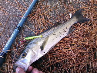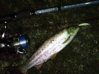 <詳細> ふと、思ったのだが、最近、当たり前のように海へ釣りに出掛けている。 少し前まで、毎週のようにフローターでバスを釣っていたのが嘘のようだ。 リアルバサーの僕がハマチだの、シーバスだの… おそらく世間ではこういう事を「浮気」と言うのだろうが、はっきり言っておこう。 僕はこれまで「浮気」なんてした事はない。 僕はいつだって「本気」だ(松山千春かっ!)。 ソルトターゲットの中でも特にアツいのは「シーバス」。 または「ツーバス」とも言う(言わん!)。 まぁ、とにかく今はコイツに首ったけなのだ(死語だっ!)。 真夜中の港に到着。今日の目標はシーバスを釣るのは当然として、 『ナモト』で、しかもまともサイズを釣る事。 ちなみに僕の言うまともサイズとは40アップの事(ハードル低っ!)。 まずは『ナモト70LLS』をチョイス。 様子見に小型シンキングミノーを投げてみる。船と護岸の間をチェックするが、 激チビのチェイスのみ。なんせロープが凄いので、うかつに投げれない。 どうにかまともに投げれそうな場所を見つけてロングキャスト。すると速攻で 「ココッ!」 とアタリ!ノらなかったが、その後も投げれば、結構アタってくる。 そしてついにヒット!なかなかのファイト!足元まで寄せてきてもまだ、 繋留してある船の下へ突っ込もうとする! が、『ナモト70LLS』は曲がりながらも、まだまだ余裕の表情! 速攻でケリをつけた! 「はい、お約束〜」 ウグイ! さっきからのショートバイトはコイツらだろう。 まったく、人騒がせな…(実はちょっと嬉しいんだろ?)。 さあ、ウグイを食らうモンスターシーバスよ来い!と、キャスト再開。 が、ここで雨が!しかも結構な雨量。車に戻って雨宿りするも、 止みそうにないので、いっそエリアを変えてみる事にした。 次のポイント付近でも止む気配無し。今日はナイトシーバスを期待していたのだが… なんせこのエリアでシーバスなんてほとんどやった事が無いので、 カッパを着てまで夜釣りする気も起きない。て、言うか凄く眠い。 「私は寝てないんだから!(雪印の社長かっ!)」 仕方無い。夜は諦めて朝に賭けるか… 「疲れたよ…なんだかとっても眠いんだ、パトラッシュ…(死ぬなっ!)」 さて、そんなこんなで朝を迎え、再スタート。 雨は止んだが、風が強くなってきた。 まぁ、「ワインドハマチ」をやるにはほとんど問題ナシだろう。 エースポイントにはエギンガーが居たので、通称「フグ牧場付近」に入る。 ロッドを『ブルーバレル86MLS』に代え、 「ワインダーZ」と化し、投げまくる。が、無反応。未だかつて無い反応の悪さ。 いつもより海が澄んでいるが、これが原因か? 結局、しつこく投げまくるも、ハマチは1バイトのみで、昼前にグロッキー。 「ワインダーZ」のつもりが、「ワインダーZERO」で終了…。 改めて思ったのだが、どんなに魅力的なターゲットでも、いつもの場所で、 いつもの釣り方では楽しみが薄れるモノだ(釣ってから言えっ!)。 さて、次は何処へ行こうか…いっそウグイに慰めてもらって、 さっさと帰るか…いや、それではあまりにも進歩が無い。 もうひとエグりしよう。さっき、チラっと出た『フランダースの犬』だが、 日本ではアニメ化され、「懐かしのアニメ名場面」の定番になっているが、 お国によっては、この、悲劇のストーリーは「負け犬」で片付けられ、 評価が低いのだと言う。なんとも厳しい話だが、僕こそこのままでは負け犬だ。 どこの国の人が見てもただの負け犬だ(ワールドクラスアンダードッグ)。 ポイントを移動。 ここは、まだまともに釣りをした事は無いが、 少し前からシーバスポイントとして目を着けていた場所。 前回、水野君とてっちゃんとの釣行時に、チラッと初めて立ち寄ったのだが、 「こんなポイント、どうせ釣れねぇよ…さっさと次に行こうぜ…」 と、2人の発するオーラに負けて、ほとんど手付かずなのだ。 まぁ、予想以上の浅さに戸惑ったというのもあるが。 それでも今日、改めて訪れたのは、やはり「クサい」から。 せめて、なんとか明日に繋がる何かを見つけたいところだ。 ここではロッドをナモトシリーズ最強モデルの『80LS』をチョイス。 これは今日が初使用になる。 最近のレポはロッドのインプレ的なモノが続いているが、 ふと、冷静に 「いったい、自分がどれだけロッドの事を分かっているんだろ…」 と、考える。もしかしたら、全く的外れな事を書いて、 自分自身の「程度」というモノが浮き彫りになって、 恥をさらす事もあるかもしれない。 でも、このフイッシングレポは、言わば「日記」のような物。 「日記」の中でカッコつけるのも変な話なので、 ここはなるべく自然体で行きたいと思う。 とりあえず、前回の釣行で、このポイントの浅さは分かっていたのでトップ系で。 「ジャクソン・RAポップ」をキャスト。 もう少し重いルアーのほうが、グラスロッドならではのフィーリングを楽しめるが、 慣れてくれば、『80LS』でも飛ばせる。 『70L