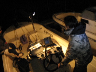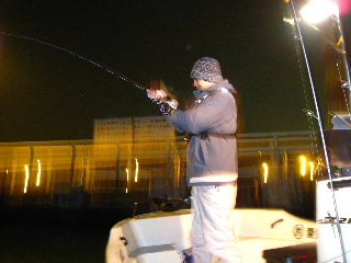 <詳細> 年末から年始にかけて、なんだかバタバタしている。 気がついたら1月もあと数日になってた。 『そういや、最近釣具屋いってないなぁ〜…』 なんてふと思ってみたら、そもそも、釣りそのものにいってなかった。。。 2009年のレポ欄もいまだ空白だ。 マズい、緊急事態セヨ。 このままだと、ショボい2月をスルーして、3月になってしまう。 せめて1月中に初釣りをすまそう。 こんなときに頼りになるのは、名古屋港のボートゲームだ。 平日のアフターファイヴにプラっと行けるわりに、釣果が安定している。 早速、明康丸小川くんに電話する。 まだ予定は無いようで、19時からの出船でお願いした。 季節柄、メバルと根魚が中心の釣りになるが、 意外にも、シーバスが好調とのことなので、 フライでのゲームを、少しやらせてもらうことにした。 天野と現地集合して、小川キャプテンに新年の挨拶をし、船に乗り込む。 海況はいたっておだやか。 あいかわらず、夜景が美しくロケーションは最高だ。 しかも、この時期としては異例の暖かさ。 とりあえず、オレのリクエストである、シーバスを狙いにいく。 タンカーと岸壁の間がけっこうあり、ライトが煌々と明るいエリアだ。 時折、ライズがみられる。 今回のシステムは、ロッドは6番、ライン#6フローティング。 フライはバス用のものをソルト風のカラーリングにしたもの。 リーダーは、フロロカーボンの2X-12ft直結。 船の上からのキャストなので、感触をたしかめながら、徐々にラインを出していく。 ルアーでやってる天野は、ワンダーの60mmでコンスタントにヒットさせている。 で、フライはと言うと、どうも反応が悪い。 たまに後ろに着いてくるのが見えるくらいだ。 小川キャプテンの言うには、ほんのちょっと沈み気味じゃないか?とのこと。 しかし、このフライの良いところは、そういう魚も浮かすところにある。 う〜ん、、、何がいかんのか?。。。 結局このポイントでは、二度ほどガバっ!とイイ出方しただけで、 フッキングにはいたらなかった。 この後、2〜3ポイントを移動するが、イマイチぱっとしない。 ルアーでもヒットせんので、たぶんおらんのだろう。 あと、2箇所ほどまわったら、メバルへ行くと言われ、到着したポイント。 壁の凹凸部分がよさそうな、比較的アプローチがイージーなところだ。 すると、数投目から水面が炸裂する! 常夜灯がかなり明るいため、シェードが濃いめだ。 そこから、フライめがけて飛び出してくる。 なんどか、喰い損ねて、やっとフッキング! そんなにデカそうじゃないが、6番ロッドをグイグイ絞り込む。 とりあえず、初物なので、慎重にやりとりし、無事ネットイン! 45センチほどのレギュラーサイズだが、 コンディションの良い、うれしい1匹だ。 この1匹に辿り着くまでに、ずいぶんと時間がかかったが、 さらにタックルとフライをマッチングさせていこう。 さて、忘れてはいけない。 本日のメインはメバルゲームであるのだ。 序盤の2時間ほどをシーバスにつきあってもらったので、 メバルのエリアから少し外れてるようだ。 シーバスエリアで少しやったが、反応が良く無いため、 少し船を走らせて、組石の駆上がりが長く続くポイントへ来た。 結局、このポイントが一番活性高かったのだが、アフターなのか、 全体的に喰いは良く無かった。 ま、本来中休みの時期なので、こんなもんだろう。 こうして、無事に初釣りをすませたわけだ。 爆発はせんかったが、有意義な2009年初釣りだった。 次はフライオンリーで来たいね。 <タックル> OKAMOTO ■ロッド:G-Loomis GLX-SR #6 ■リール:LOOP evotec fw 4seven ■ライン:バリバス サーフェイスライン#6 ■リーダー:バリバス サーフェイスリーダーFC 2X 12ft ■フライ:フローティングミノー ++++++++++++++++++++++++++++++++++++++++++++++++ AMANO ■ロッド:フィネッツァプロトタイプ762UL-S ■リール:イグジスト2506 ■ライン:ヨツアミG-Soul PE0.4号+シーガーグランドマックス1.0号 ■ルアー:スクリューテール