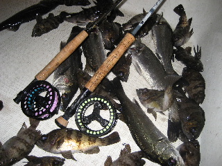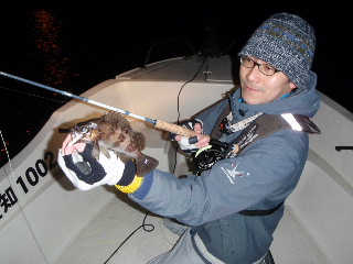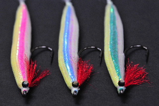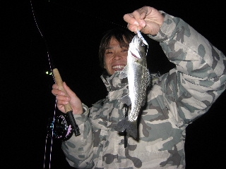 <詳細> 久々にフライラインの銘柄を換えてみることにした。 ここ数年、定番にしていた、モーリス製のラインから、3M製 にチェンジすることにする。 フライを始めた頃〜数年前までは、3Mのラインばかりだった ので、元さやに戻るような形だ。 フライフィッシングにおける、ラインの扱いは、ルアーのそれとは ずいぶん違うと思う。 ロッドの延長であり、またはルアーに相当したりもするため、セレ クトは慎重だ。 本来フライラインの表面は、ガイドの滑りを良くするため、ツルツ ルスベスベで、いかにも “飛びます!”みたいな感じで、メーカーもそこんとこを売りにし てる様な気がする。 一部の商品に、表面に溝が掘られたモノもあるが、それでも、タテ 方向に入っている(ナルト状態)ので、 ストレートに触った感じは滑らかだ。 しかし、そんな常識を根底から覆すのが、3Mの“シャークス キン”と言う新たなシリーズ。 その名のとおり、ラインの表面が鮫肌状になっており、実際さわっ てみると、なるほど、ザラザラしている。 デビューしてからしばらく経っており、実際使用した人の高評価 と、お店の人の勧めもあり、 迷いなく購入できたが、初めて触った人は、「?!大丈夫か?コレ・・・」と、 かなりの違 和感を覚えるだろう。 さて、その実力はいかに?? シャークスキンのレビューは、後記にまわすとして、今日も明康丸 に乗り込む。 本日のお題は、あまりにも乗らないメバルへ対策として、新フライ の投入と、 シーバスゲームのボートポジションのさらなる研究だ。 いつもの時間に出航しているのだが、日没が遅くなっており、空は まだうっすらと明るい。 まだまだ空気は冷たいが、季節は確実に暖かい方へとシフトしてき ているようだ。 海に出てみると、若干の波は残っているものの、ほぼ無風。 まずは、シーバスから始める。 今回、ミノーのカラーをすべて蛍光イエローにした。 違うのはサイドラインのみで、背中の色はすべて同じだ。 と言うのも、フローティングミノーを使ったこの釣り、 どのカラーが魚に対し、効果的であるかどうかの前に、 ナイトゲームの場合、フライが見えるか見えないかが非常に重要なのだ。 フライのトレースコースが、シビアなケースが多く、フライを目視 できてないと、 釣りが一気に難しくなる。 今回持ち込んだフライを、ローライトの中、あえてストロボ無しで 撮影してみたが、 その発色の強さは、見ての通りである。 ![]() 実際使ってみても、抜群の視認性を発揮し、少々暗かろうが、ポッ カリと浮き上がって見える。 喰わせたいところに、きっちりとフライを送り込むことができる。 かなり強烈なカラーなので、シーバスの喰いが心配だったが、問題 なく良好で、 カラーでの偏食はみられなかった。 あっというまにイケスが狭くなる。 ボートポジションに関しては、かなり追い込んできてる感じだ。 ここ数回連続でガイドしてもらっているため、間合いがフライのそ れにフィットしてきている。 ルアーに比べ、強烈に水抵抗のあるラインを使用するため、フライ ならではの問題も発生する。 そのため、フライ独自の操船が必要なのだ。 その点、明康丸の小川キャプテンの操船は、すばらしいの一言だ。 フライフィッシング自体は未経験者なのだが、名古屋港でのガイド 経験が長いのと、 元々テクニカルな釣りが好きで、フライフィッシャーの“小うるさ い注文”にも快く応えてくれる。 フライフィッシングとルアーフィッシングの違いを、明確に区別し てくれ、 なおかつ、“釣るのは同じシーバスだ”、と言うところに意識を置 いてくれる。 しかしこの釣り、DVDなどで観ると、投げて引っ張ってズ ボっ!って感じで、 かなりイージーに釣り上げているが、 実際やってみると、内容は結構複雑だ。 ポイントの選定に関しては、プロのガイドに任せれば良いが、ボー トポジションとリトリーブコース、 フライ、そして、リトリーブパターン(意外とコレがキモだった)は、 やっ てみないと分からない事が多のが分かった。 正直、初めてトライしたときは、『釣れすぎたらどうしよう、フラ イが足りんかも。。。』 なんて、ありがちで、アマアマな妄想をしていたのだが、『出なお してこい!』と、みごとに粉砕された。 なんでもそうだが、簡単に見えるものほど、実は色々とやってるの だ。。。 そして、NEWラインの3Mシャークスキン。 スゴイね。 値段が高価い意外に、弱点が見つからん。 驚異的な滑りの良さと、その持続性。 空気抵抗も少ないのか、不利な風向きでも、かなり快適だ。 あと、なぜか分からないが、巻グセが非常に付きにくいのも特徴だ。 “10年追いつけん”との発言も、ブラフじゃない。 あ、あともう1つ弱点があった。 ストリッピングする指が、“削れる”のだ。 自分は、事前に聞いていたので、指サックをして望んだが、結構な 人数がやってしまっているらしい。 あともうひとつ心配なのが、ガイドへの影響だ。 通常