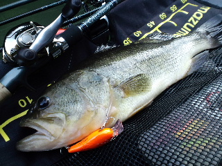 <詳細> 『泊まりでGO!GO! part11』 〜華麗なる釣行記〜 【1日目】 僕が最近読んでいる『カレーを食べると病気はよくなる』という本があるのだが、 そこにはこんな事が書いてある。 「カレーに入れるスパイスはすべて薬です」 知っている人も多いと思うが、いわゆるカレー粉を作る、様々なスパイスは「漢方薬」と同じ物なのだ。 つまり、「漢方薬」とともに、沢山の野菜を無理なく食べれて、肉で蛋白質も取れるカレーという 食べ物は、塩分と、脂分を抑えて作れば凄い健康食なのだ。 実験の結果、脳の血流量が増える事で、注意力や、判断力がアップする事が証明されているのだという。 ![]() あのイチロー選手が毎朝カレーを食べている、と聞けば、これは無視出来ないのではないだろうか? 注意力と判断力。これはスポーツ選手だけでなく、僕ら釣り人にも不可欠なモノなので、 釣行前の食事に、カレーはもってこいと言えるだろう。 そんな訳で、今回は、夜のうちに作っておいた「ポークとトマトのカレー」で脳に喝を入れ、 ![]() 釣りへ向かった。 まずは「地図に載ってない池」へ。 今の時期は、程度の差はあれ、どこの釣り場も、あまり釣れないけど、出ればデカい! という感じだが、ここはまさに、その見本のような場所。残念ながら今回はダメダメデーのようだ。 まぁ、バスにヤル気が無いなら、スパイス効果も意味ナシか…。 次は、今期好調の「Hチビ池」へ。しかし、ここでも何も起こらず。マイったねこりゃ…。 次の釣り場は迷った挙げ句、まだ釣りをした事の無い池に入水する事にした。 最近、お決まりの池に頼りっきりだったので、そろそろ新規開拓をしたい、と思っていたのだ。 水の感じは、今の時期の野池にありがちな「白濁しているのに、澄んでもいる」という「?」な状態。 どういう事かというと、一見、かなり濁っているのに、リトリーブしているルアーは、 意外と目視出来てしまうのだ。 つまり、上層は澄んでいて、下層が濁っているという事になる。 今年釣ったバスは全て上層で掛けているのだが、どうやらこれが 「寒くても意外と上層でバスが釣れる」理由のようだ(スルドいな。これがスパイス効果か?)。 とある方のブログに書いてあった(ズコ)。 初めての場所だし、速めのテンポで流していく。浅いワンドはあまり入れ込まず、 その入り口付近に重点をおき攻めていくが、ノーバイトのまま最奥の、 ボトム丸見えドシャローまで来てしまった。 今日の釣りが終わった事を感じながらも、水中に視線をむけると…居た!50cm近いバスだ! が、ワームを投げても無視。しかし、こんな浅場でバスを確認したのは今期はこれが初だ。 水温を計ると…11℃。このあたりから浅場にバスが増えてくるのか? これは、さっき、ほとんど攻めなかった浅いワンドも攻め直す必要があるだろう。 戻りながら、今度はワンドを重視して攻める。 ![]() さっき「上層は澄んでいて、下層は濁っている」と書いたが、クリアーな層は意外と厚いようなので、 やや深く潜るシャロークランク「ノリーズ・ロックパイルクローフルサイズ」をチョイス。 これを3角巻きしてビラつかせながらリトリーブ。 するとワンドの最奥部付近で「グッ」と押さえ込むようなバイト!ヒット! ヒキはあまり強くないが、テールフックだけの頼りないフッキングだ。タイミングを見計らい、 ロッド操作でベリーフックを掛ける事に成功!安心してランディングを決めた! ![]() サイズは…47、48…惜しい!50には届かず、49cm! ![]() 初めての池でこれなら大満足ではあるが、相変わらず、首の皮1枚の釣果だな… ![]() しかし、これで明日の予定は「まだ釣りをした事の無い池だけに浮く!」という流れに決まった。 さて、明日に備え、今夜はガッツリ食べたい。伊勢市の洋食屋『キッチンクック』で、 裏名物メニューの「ドライカツカレー」を食べた。 ![]() カレーと言っても、僕が理想とする「インドの家庭的カレー」とは全く別物だが、これはこれでうまい。 しかし、油で炒めたドライカレーに、豚カツとカレーが組み合わされるのだ。 おそらく、カロリーや、脂質などのスペックたるや、恐るべきモノだろう。 それを承知で、あえてコレを食べたのは、ある思いがあっての事だ。それは… (言うのか?…言っちゃうのか?…) 明日もカツぞっ!(きゃー!) 『泊まりでGO!GO!part11』 〜華麗なる釣行記〜 【2日目】 今日は予定通り、新規開拓デーだ。だが、なかなか甘くない。 道が狭くて進めなかったり、色々問題が有ったりで、3つ程の池を見送り、 ようやく1発目に入水できた時は、すでに9時00分頃。 ![]() それでも釣れるなり、 バスを目撃するなり、成果があればいいが、全くナシ!はい、移動〜。 新たな池に到着。 ![]() 護岸がやや新しいのが気になる…。 そして、なぜかイノシシのどざえもんが浮いている…。 とりあえず、目視でも何でも、バスの生息が確認出来ればOKなので、ロッドを1本に絞り、 テンポよく、ドンドン撃つ…ん?…テンポよく