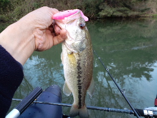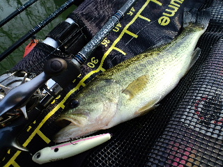 <詳細> 『泊まりでGO!GO!part12』 〜春本番ですな〜 【1日目】 行くから釣れる、釣れるからまた行く。今年のバッシングはそんな良い流れに乗っている感じだ。 まぁ、上を見たらキリの無い世界ではあるが、僕的には過去に例の無い好調っぷりなのだ。 今期、すでに2回目になる「泊まり込み釣行」が僕のテンションの高さを物語っていると言えよう。 まずは前回、初めてフローターを出して、いきなり49cmがご挨拶をしてくれた、 まだ名前も決まっていない「新一年生」のような池。 ![]() いや、この池から見れば「新一年生」なのは僕の方か。 ここの、まだ未知なるポテンシャルをさらに探ってみる。 相変わらず下流域は全く無反応。おそらく、居ても僕の釣り方が合わないのだろう。 速めに移動。 前回、49cmを上げたワンドへやって来た。いきなり最深部へは進まず、入り口付近から慎重に攻める。 と、まさにワンドの入り口の、岸に近い、やや浅くなった場所で「ヌッ」とした感触が!ヒット! なかなかの重量感!ここは「マキ・モノ63MB」の粘りに任せて耐える! そして無事ハンドランディング! 「♪いちねんせい〜になった〜らぁ〜でかばすひゃっぴきつれるかなっ」 ![]() 48cm! 100匹には程遠いが、この池はなかなか良さそうだ。 ヒットルアーは「デュエル・ショートテールロングキャストMID改ラトリンチューン」。 ![]() ボディに、ハンダゴテで穴を開け、「ラトラー」を差し込むという、 発泡素材ならではの荒ワザチューンだ。 その後は、最上流部で50cm近いバスを目撃したが、全く無反応。戻りながら、 さっき、あえて攻めなかった、下流部にあるワンドでフロッグで一発掛け損ねて終了。 かなり浅い場所でもバスの反応が見られるようになってきた。あと、ここは、割と大きな池で、 駐車場所が水辺に近いせいか、結構ボーターが来る事が分かった。 ここは「ボート池」と名付けよう。来週も一番乗りを目指して、早めに来るか。 次は「Hチビ池」へやって来たが、40cm級を何匹か目撃するも、ノーバイト。 でも、この池も、かなり浅い場所でバスを目撃するようになってきた。 なんせ目の離せない状況ではある。 次はエリアを変えて、去年のGW以来の「池らしい池」へやって来た。 ![]() かなり浅い池なので、水温は19℃あり、岸辺には小バスとギルが見える。 これならトップで普通に出るでしょ? と、ペンシルベイト「リアクションイノベーションズ・ヴィクセン」の小さい方のサイズをチョイス。「スーパースプークjr」と「サミー」を足したような、それでいて、 しっかり個性も有るナイスなルアーだ。 池の最奥部で「ガボッ!」と、今期、初トップのバスを連れてきてくれた。 ![]() さらには「リアクションイノベーションズ・スキニーディッパー」の表層引きでもヒット! ![]() やはり久々のトップへのバイトは刺激的だ。 それにしても、去年活躍した「スワンプドンキー」といい、 この『リアクションイノベーションズ』というメーカーのルアーは、 一見、普通なように見えるモノでも、イカしたアイデアが効いていて良い。 最初、嫌いだった、パッケージのセンスもだんだん好きになってきちゃった。 ![]() ここで初日は終了。今日は早めに寝るとしよう。明日は今期初の「イモリダム」へ行く予定だ。 まだこの時期に行った事はないが、 なんか全然、釣れない気というモノがしない(いつからそんな強気になった?)。 『泊まりでGO!GO!part12』 〜春本番ですな〜 【2日目】 一番乗りで「イモリダム」へ入水。 ![]() と、言うか、結果から先に言うと、この日は他に誰も来なかった。 まさに「奇跡のビッグレイク」と言えるだろう。 去年の初イモリダム時に良く釣れた、水中が盛り上がったポイントへ来たが、ノーバイト。 この時点で下流域は捨て気味の気持ちだ。上流域へ向かう。 まずは、取水塔付近の岬で「ノリーズ・レイダウンミノーミッド110SP」に小型がヒット! これはジャーキングデーか? しかし、バイトは途絶えて、イモリワンドまでやって来た。 まだ早いかな〜と思いつつ、浅いインレットの奥へ、 昨日のヒットルアー「リアクションイノベーションズ・スキニーディッパー」をキャスト。 するといきなりバイト!が、フッキングせず。ここはあえて追いキャストはせず、 ポイントを休ませる意味も込め、上流へ移動する。 去年、5月中頃は上流域は全くダメだったが、この時期はどうか? これが今回、最も確認したかった事なのだ。 すると、また「ノリーズ・レイダウンミノーMID110SP」にヒット! ![]() 41cm! 良いね〜ジャーキング! しかし、このダムのバスは、こんな季節でも痩せている。まさかすでにアフターなのか? いや、おそらく、冬の間、あまりエサにありつけなかっただけだと思うのだが…良く分からん。 まぁ、釣れればなんでもいいや(あなたそれでもリアルバサー?)。 さらに上流へ。バイトは途絶え、ついに最上流のインレットにたどり着いた。 さっき、他のインレットでもバイトを得られたので