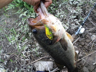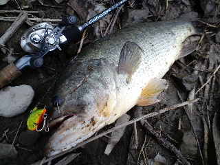 <詳細> 僕の釣り人生は、近所を流れる、庄内川のハゼ釣りからスタートして、 海部郡のライギョでルアーデビューを果たし、養老方面でバスにのめり込んだせいだろう、 山の中にある、水の綺麗な池や、ダムで釣りをする事の多い現在でも、 アシに囲まれた釣り場というのは、特別な思いがある。 ![]() 特に最近、リザーバー系のポイントで、ハズし気味の釣行が続いたところに、 ふと、立ち寄った養老方面で良いバスが釣れてしまったので、なおさらだ。 そんなわけで、今回も僕の『原点』の一つである養老方面へやってきた。 まずは、前回、タナボタで46cmをあげた場所へ。 前回は、フリッピングロッドで無理矢理やったが、今回は「フレックスハント69HW」を用意した。 陸っぱりでは、なるべくロッドを複数持ち歩きたくないので、 フロッグを中心とした「何でもロッド」としてのセレクトだ。 まずは、今回もフロッグを投げてみる。すると、間もなくバイト! しかし、フロッグを持っていかず。地味なバイトだった。活性がイマイチなのだろうか? その後も、そんな地味バイトが数回あったがキャッチできず。 今日のバスにフロッグが合っていないのだろう。 少し開けた、オープンなポイントへ移動。 今日は、こんな事態を想定して「何でもロッド」を選んで来たので、作戦変更は早い。 次はバイブレーション「ノリーズ・ラトリンジェッター」をチョイス。 ヘビーパワーのロッドでバイブレーションとは、かなり無理矢理っぽいが、 「リフト&フォール、ジャーク&フォール」で使うのであれば、 むしろグラスロッドより向いているだろう。 この「バイブレーションのリフト&フォール、ジャーク&フォール」は、 僕の中では「ビッグバド」「フロッグ」に次ぐビッグフィッシュゲッターである。 数はそんなに釣っていないが、そのほとんどが40アップなのだ。 オイシそうな、ピンポイントを狙っているせいもあるが、昔、多用していたラバージグより、 数はともかく、平均サイズは上がる気がするので、これはきっと、何か有ると思う。 この日もまず、足元のクサそうなポイントから撃っていく。 すると、着底後、リフトから、フォールに入った時、違和感が。 速攻であわせる!ヒット! 「ギュギュギュ〜!」 足元でヒットしたので、アワセと同時にゴボウ抜きっ! と、思いきや、なんと、ラインを引き出して行くではないか。 ドラグは、力一杯締めてた訳ではないが、今回はフロッグを使う事も想定していたので、 かなり強めに締めていたのに凄いパワーだ。 これまでこの「フレックスハント69HW」をここまで絞り込んだヤツはいなかった! …て、良く考えたら、これがこのサオでの初ヒットだった! 無事、寄せてきて、良く見ると、スレ気味で、ルアーが頭に近い所に掛かっている。 引きが強かったのは、このせいもあるだろう。ここは慎重にハンドランディングで決めた! ![]() 「あっぷっぷ〜」 ![]() 52・5cm! ![]() 久々の養老50アップ!ちょっと、口の古傷が気になるが、嬉しい〜♪ ラッキーだったのは、ヒットした時、沖に走ってくれた事だ。手前のカバーに突っ込まれたら、 バスに掛かっていないフックがカバーに引っかかって、バレていたかもしれない。 そんなヤバげなフッキングだった。 その後は、数回バイトを得るも、ノーキャッチで終了。釣りを終えた時には、 靴とズボンは泥で汚れていた。 「昔はよく泥んこになって遊んだなー、はははっ」 なんて事は普通、30台後半にもなれば、遠い目をして振り返る事だろうが、釣りを続けていれば、 たまにはある事だ。まぁ、さすがに子供の頃のように、ヘドロの川に、 半ズボン&サンダルで立ち込んで釣りをする訳では無いが、 「アシに囲まれた釣り場」というのは、僕にとって『原点』であると同時に、 今でも魅力的と感じるのだ。 さて、今日の夕飯は、また前回に続き、マイブームの担々麺。 その『原点』と言える「汁無し担々麺」を求めて、三重県いなべ市の『胡同』へやってきた。 ![]() 味噌が効いているのか?少しジャージャー麺っぽいが、風味はやはり担々麺のそれである。 パクチーもナイス。僕の好みでは、どちらかと言うと担々麺は汁有りのほうが好きだが、 お店の方々には、汁無しが『原点』である事も忘れてほしくない。 たまにあるのだが、汁が普通のラーメンのようにナミナミと注がれていると、 担々麺の醍醐味が薄れるのだ。大体そもそも…(長くなりそうなのでこの辺で) まぁ、実際にはすっかり変わってしまった釣り場や、消滅してしまった釣り場も多いし、 『原点』を求めて釣りへ行っても、がっかりさせられる事も多いかもしれないが、 たまには『原点』を思い出してみるのも良いだろう。 いっその事、ピクニックへ行って、昼飯を食べながら、湖にスプーン(さじ)を落として、 マスが食いつくのを見て驚いてみるのも良いかも(そこまで『原点』に戻らんでもいいよ…)。 <タックル> ■ロッド:フレックスハント69HW ■リール:シテ