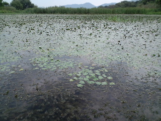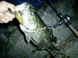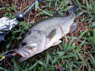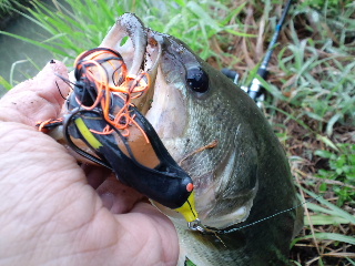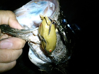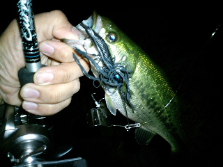 <詳細> つくづく思うのだが、世間様が『魚釣り』というものに対し、 抱いているであろうイメージの「のんびり息抜き」とか「良い暇つぶし」とかは 全くもって間違いである。 仕事が終わり、普通なら、テレビでも見ながらくつろぐ時間、釣り師は週末の準備に勤しむ。 時間に余裕があればそれも楽しい時間だが、当然、仕事なんて、僕ら釣り師の都合なんてお構い無し。 なかなか思うようにはいかないモノだ。 そして週末、普通、朝は普段よりのんびりするモノだが、釣り師は、仕事に行く時より早起き、 ヘタすりゃ睡眠ゼロで釣りへ向かう事になる。 当然、楽しい時間を期待しての事なので、アテが外れた時はドッと疲れが出るのだ。 まぁ、好きな事に、それだけ打ちこめる状況に居るのは幸せなんだろうが、 「何の趣味も無い人が羨ましい」 「釣りなんて絶対、人にはすすめないね」 「今度、生まれてきたら、釣りの楽しさを知らずに人生を過ごしたいな…」 なんて、グチが心に渦巻く事もしばしばである(ちょっと調子が悪いとコレだ)。 さて、今回は「琵琶湖方面」へやってきた。別に、僕はそれほど贅沢な釣果を望んでいるつもりは無い。 琵琶湖に来ても、ロクマルなんて全く期待していないし、数釣りなんて、ハナっから諦めている。 僕の希望を簡単にまとめれば「自分がやりたい釣りで釣りたい!」となる。 その場のバスのゴキゲンに合わせて歩み寄るのでなく、自分がやりたい釣り方で釣れるバスを探す訳だ。 そして今回は、今年の私的ヒットと言えるナイトバスをやってみる。 これまで、アシに囲まれた野池や、山の中の野池やダムをホームグランドにしていた僕は、 ナイトバスなんてほとんどやらなかったが、琵琶湖方面には足場の良いポイントも有るのでありがたい。 が、そんなポイントは当然、プレッシャーも高いので、「夜」というだけでは弱く、 「プラスα」が加わる事で『自分がやりたい釣りで釣れる』ポイントへと変化するのだ。 まずはバズベイト「ノリーズ・ボルケーノ2」をチョイス。 8月には40アップも出ているので期待したが、このサイズが2本で打ち止め。 ![]() 「やりたい釣り」とはいえ、やはりある程度のサイズは欲しい。 8月より、藻的なモノが増えているので、フロッグでさらにタイトに攻める。 ややバスに「歩み寄った」と言えなくもないが、これも「やりたい釣り」なのでOK。 アオミドロの絡んだ藻の際を、擦るようにリトリーブ。 バズベイトなら、速攻でペラが回らなくなるだろう。 すると「ガボッ!」出た!素早くロッドを寝かせ、テンションを抜く事で、 絶望に陥り、無抵抗になったカエルを演じさせる。 「吐くなよ〜…」 と祈りながら、テンションが掛かるか、掛からないかの微妙なとこまでラインスラッグをとる事で 今度は 「やっぱり食われるなんてイヤだ!」 と、抵抗をみせるカエルを演じる事になる。 バスは逃がすまい!と、フロッグをしっかりくわえる事だろう。 そしてここでフッキング!ノッた!ヒット! この一瞬で繰り広げられるドラマがフロッグの楽しさであり、難しさでもある。 フロッグにバイトした魚を掛ける事に関しては、 タックルさえしっかりしていればライギョの方が簡単だ。 バスは結構、不可解なスッポ抜けがよくある。 だからこそ無事キャッチした時は大きな満足が待っているのだ! 「ヤめられまへんゲコ」 ![]() 45・5cm! ![]() 最近の、モヤモヤを吹き飛ばしてくれた、気持ち良い1発! ヒットルアーは「スナッグプルーフ・フロッグ改ブレードチューン」。 ![]() このテのフロッグの元祖ながら、 今だに1軍に居座り続ける、ビニールガエル界の重鎮だ(ビニールって…)。 僕の言う「やりたい釣り」と言うのは決して、ゴリ押しとか、考える事を放棄するとかではなく、 ある程度、的を得たモノでなければならない。そういう意味で「40アップゲット」というのは、 一つのバロメーターになる。良い気分で次のポイントへ向かう事が出来た。 次のポイントではフローターを出す。 「琵琶湖方面」は陸っぱりポイントが充実しているので、ヘタにフローターを出してハズすより、 多くのポイントを廻る方が、基本的に効率が良いと思っていたが、 開拓が進むにつれ、どうしてもフローターで攻めてみたいポイントが見つかったのだ。 要はハズさなきゃ良いのだろう(そりゃそうだ)。 少々、空模様がアヤシいが、今後の為、短時間の様子見でも良いから、浮かんでみる。 ![]() 前回、晴れた日に、このポイントをチラッと覗いた時は、 ボートだの、ジェットだの、色々走りまわっていたが、今日は気持ち悪いくらい静かだ。 鏡のような湖面が不吉にさえ感じる。 恐らく、この後、荒れる予報が出ているのだろう。かなりの短期戦になりそうだ。 テンションが上がっている時なら、少し位の雨なんて屁でもないが、怖いのは雷だ。 こんな、広い湖に一人でポツンと浮いている時に雷が来たら…想像しただけで、 緊張でウ●コがしたくなってく