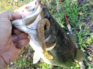 <詳細> 「ぶるる…さ、寒っ!」 さて、前回のレポにも書いたように今週も早朝から養 老野池へやってきた。 ![]() 少し冷え気味なのは家を出る時点で分かっていたの で、先週より厚着してきたにもかかわらず、 メチャ寒 い。車から降りた途端、乳首がピンコ立ち! まぁ、もう一枚上着持ってきてるからいいけどねー (着ろよ…)。 寒いとは言っても、まだビビる程ではない。いつもの ように速い釣りを展開。 水面にはかなりベイトっ気があるが、バスからの反応 は無い。 もう少し、減水してくれれば釣りやすくなる のは分かっているが、これはどうしようもない。 まぁ、今回はそんなに入れ込むまでないか。今日のメ インポイントの、 先週40アップの出た「メジャーな 川」へ向かった。 が、なかなか思い通りにはいかないモノで、先週とは 川の状況が変わっている。 前回アタったポイントもこ とごとくノーバイト。マズいな…。 ランガンで、近辺の川、水路、池を攻めていくがダ メ。 さて…次はどこに行くか…岐阜市へカレーを食いに行 くか、大垣市のお気に入りのカフェに行くか、 いっそ 名古屋へ戻って、坦々麺の新規開拓をするか… て、す でに気持ちが逃げてやんの…。 でも、その辺の事は夜 のお楽しみにとっておいて、もう少し頑張ってみよ う。 今釣っておかないとこれからの季節、もっとキビ しくなるだろうし。 結局また「メジャーな川」へ戻ってきた。 いつもの自 分の釣り『レギュラーサイズのハードルアーがメイ ン。 それで攻めきれない場所はフロッグ、もしくは ワームの表層引き』で探り歩く。 これは活性の高い、 ある程度のサイズのバスを想定している訳だが、 当然 なかなか上手くいかない時もある。 過去に、何度か経験しているのだが、僕が釣れてない 時に、 近くでもっとライトな釣りをしている人にあっ さり釣られたりすると、 心がポキン!と折れそうになる時がある。 でも、結局懲りずに、次回釣りに行っても、いつもと 変わらない釣りを続けて今に至っている訳だ。 まぁ、 一言で言えば、そういう釣りが好きなのだろう。 とはいえ、別に僕は「ライトリグは絶対やらない!」 とか「何ミリ以下のプラグはセコいから使わない!」 なんて主義を持ち合わせている訳でもない。 ただ現実 問題、体は一つしか無いし、時間も無限では無いので、 その中で自分の好きな釣りでの可能性を追求して いるだけだ。 幸い、今日のメインポイント「メジャーな川」は、小さな野池と違って、 広く探れば、可能性 は有るかもしれない。 そして、川の形が大きく変化している場所に来た。し かもオイカワらしきベイトがライズしている。 まぁ、 おそらく誰の目にも好ポイントと写るであろう場所だ し、 もう昼過ぎだし、当然、すでに攻められた後だろ うが、やってみる価値は有るはず。 しかし、ペンシル ベイトで探るもノーバイト。 となればコレ。僕の好きな、ハードルアーとフロッグ の間を埋める役割で今年活躍してくれている 「リアク ションイノベーションズ・スキニーディッパー」でさ らに際どく攻める。 まぁ、このルアーは見た目がすで に充分キワどいけどねー。 ![]() 話によると「スキニーディッパー」とは『素っ裸で泳 ぐ人』を指すらしい。 納得…。 すると「ガボッ!」 出た! が、フッキングさせ損ね。 イカん…ラインスラッグの処理が甘かった…。 ノーバ イトが続いていたのでアセってしまったか。でも、よ うやくバスを見つけたぞ。 対岸へキャスト。フローティングカバーの上に落ちた スキニーディッパーを、 オープンエリアに引っ張って きて、スイミング状態に入ると間もなく 「ガボッ!」 出た! 今度はしっかりラインスラッグをとりフッキン グ! ヒット! ぃやっほー! 「あっぱれ!スキニーディッパー!(あっぱれ!素っ 裸で泳ぐ人?)」 ![]() 44cm! ![]() いやー、スッキリさせてくれた! やはり、この近辺は活性が高かったようで、その後休 憩をはさみ、もう一度攻め直したところ、 バスは キャッチ出来なかったものの、数回バイトが得られ た。 太めのワームは、バスのサイズが小さいと、くわ え込みが悪くなるのは、ある程度仕方ない事だ。 季節のせいだろうか?今日は前回以上にバスが居る所 と、居ない所がハッキリしていた。 と、なると今日の 「メジャーな川」は、ルアーのサイズを下げたり、ス ローな釣りをせずに、 足で稼ぐ事に重点を置いた釣り 方で正解だったのだ…多分ね…(自信を持てっ!)。 しかし最近、養老方面に通ってみて改めて感じたの は、ポイントも、釣り方も、 まだまだ開拓の余地を残 しているという事。 いつも素通りしていた「あたり 前」の風景の中にも、お宝が眠っているかもしれな い。 さて、前回のレポでは「近場を見直そう」というテー マで夕飯をセレクトしたが、 今回は「当たり前」を見 直してみようと、牛丼屋の代名詞「吉野家」へやって きた。 「♪牛丼一筋ぃ〜80ぅ〜うぅ〜年〜」のテレビ CMはあまりにも有名である (そのC