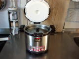 もうね、これのお陰で時間のかかる料理をするようになりました。豆を煮るのも肉を2時間も煮込むのも、これがあればこそ。中に入っている内鍋(普通に鍋)を火にかけて、沸騰してちょっとしたらこの外鍋の中に入れておきます。外鍋が魔法瓶みたいな役割をするんです。ガスだとかけっぱなしで出かけるなんて出来ないけど、これがあればOK。私は圧力鍋よりも重宝すると思いますよ。分かりやすいし。これは4,5Lサイズだったかな。で、20000円近くしたと思うけど、もっと小さいサイズで1万もしないで買えます。それだけの価値はある!ホットサンドメーカー
