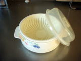 野菜の水切りに重宝!形状は色々あるみたいです。私は近所のおばさんにもらった。これは上のつまみをぐるぐる回すタイプ。ヒモを引っ張るのもありますよね。キャベツの千切りの時のみならず、アップルパイを作るときにもりんごの水気をとるのに使える。割と重宝する品ですよ。これのお陰でキッチンペーパーを使わなくてもよくなった♪ホワイト・ボード