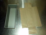 これは右側が主役です(左はただのパウンド型)。ネット通販(スタンダード・キッチン)で購入。ものによるけどこれは30×40で380円くらいだったかな。大きさによっても違います。これはホントに便利です。無駄にクッキング・ペーパーを捨てなくて済むし、毎回切らなくても済むのが何と言っても1番のメリット!私はパウンド型、スポンジ型、電子レンジの天板用(×2)と使いまくっています。型を洗うのも楽になるし、言うことありません!効率良く使えるように展開図を頭に浮かべながら買いましょう(笑)。パン焼き器