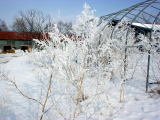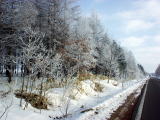 道東に限らないかもしれませんが、、鼻水がしばれ(凍り)ました(笑)。早朝5時半頃、牛舎に向う途中鼻に違和感を覚えまして、以前から友達に「あんまり寒い日は鼻水が凍るよ」と言われていたので、ああこの事かあ、とすぐ気が付きました。正しくは鼻水がしばれているのではなく、鼻の中の水分がしばれているのだそうです。多分…マイナス20度は超していたんじゃないかな。下の写真は、そんなに寒くない日。霜が木について昼頃までこんな感じで木が真っ白でした。綺麗ですよ〜♪